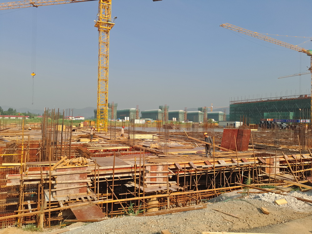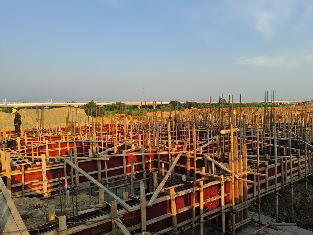 9. 行政楼:地下室南侧平台模板完成,外墙模板完成90%,平台钢筋完成60%。
