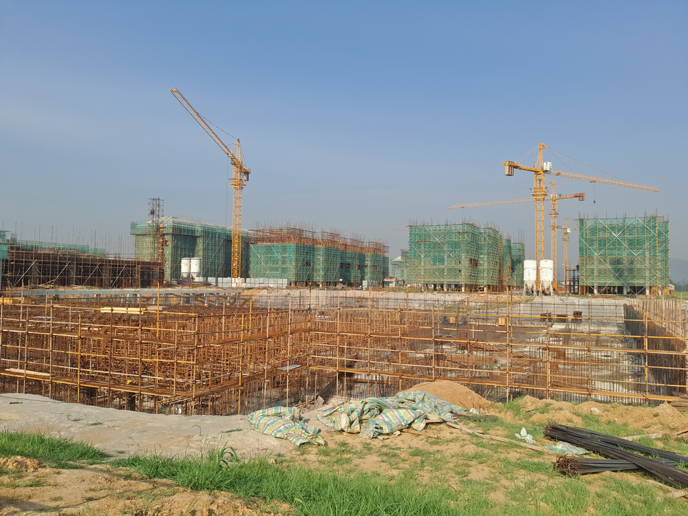 19. 3#学生宿舍组团:3-1、3-2六层排架、模板完成,钢筋完成20%;3-3四层砼浇筑完成,排架完成20%;3-4五层排架平台完成,钢筋完成50%。