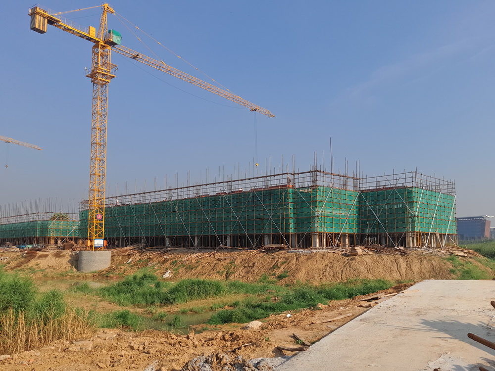 16. 青年教师周转公寓:二层排架搭设结束,三层模板完成,钢筋绑扎80%。
