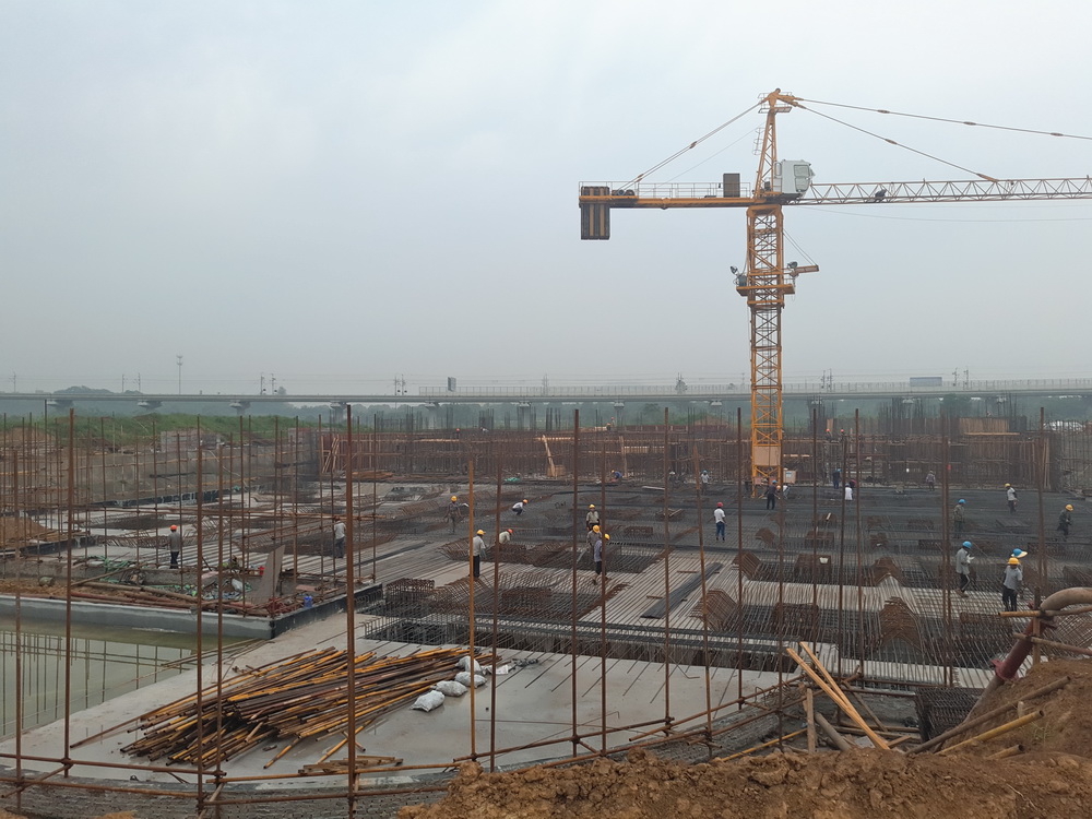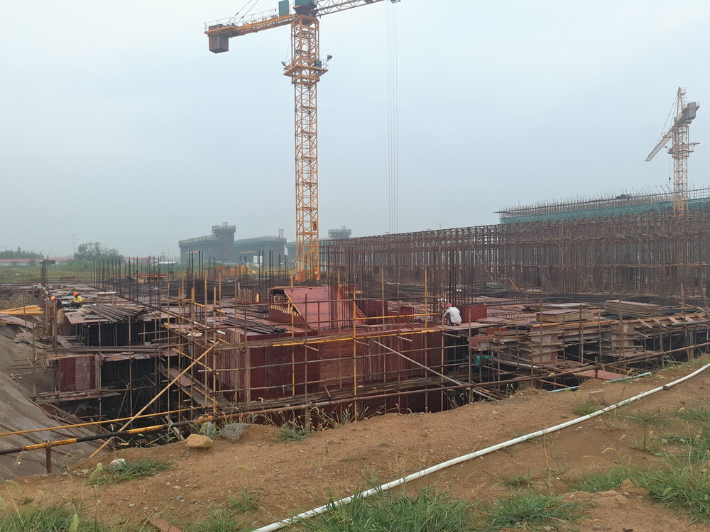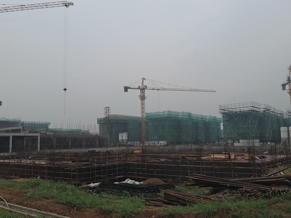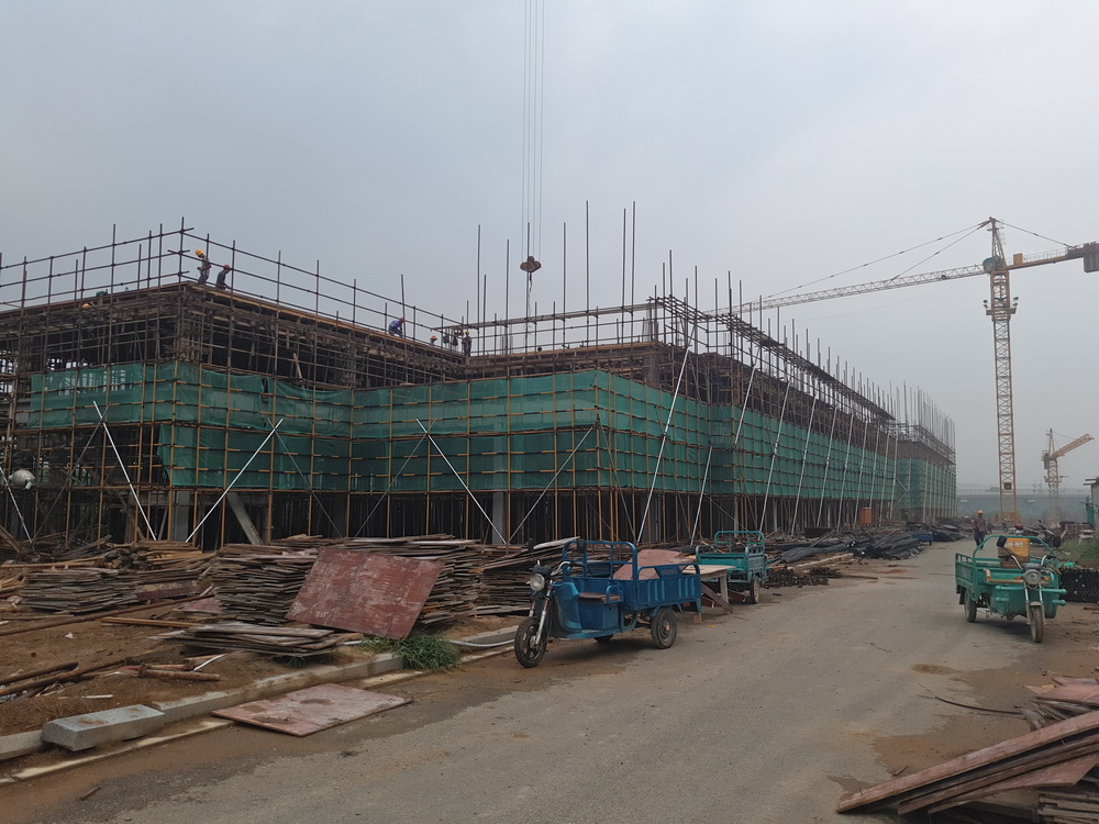 2. 图文信息中心:三层平台模板、钢筋完成90%。