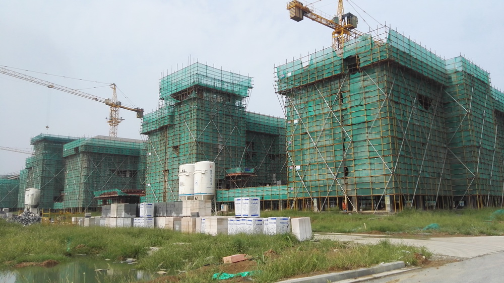 13. 青年教师周转公寓:四层排架搭设完成,平台模板完成30%。
