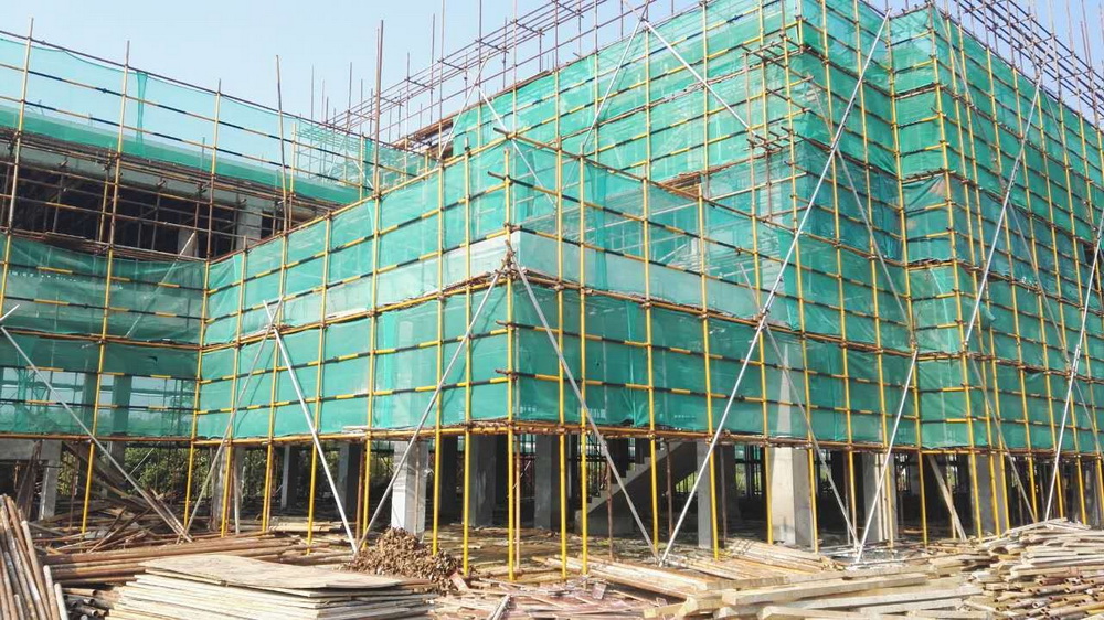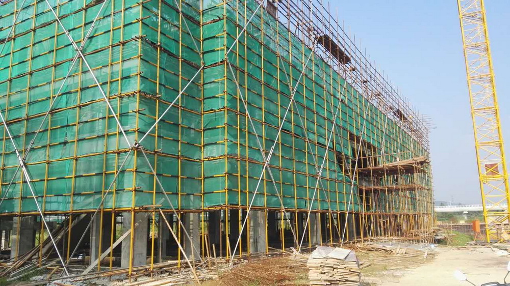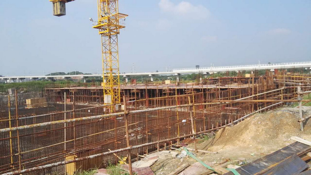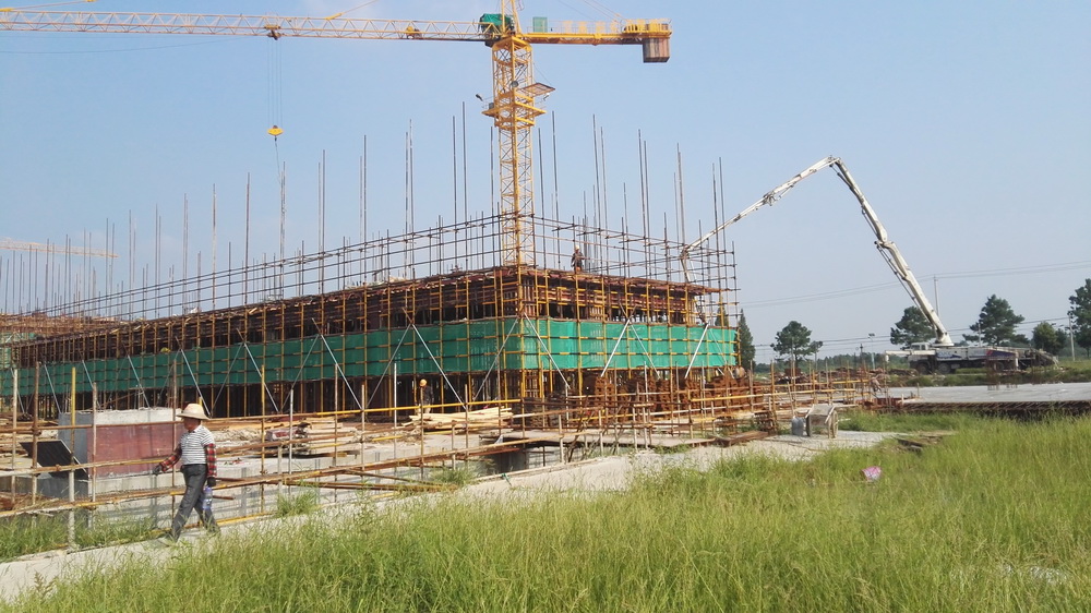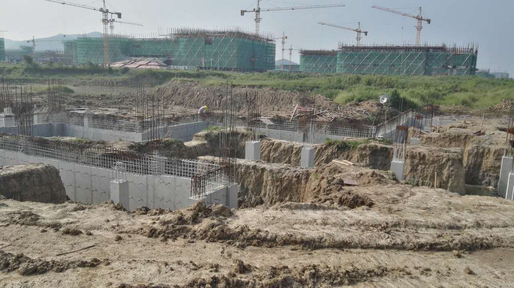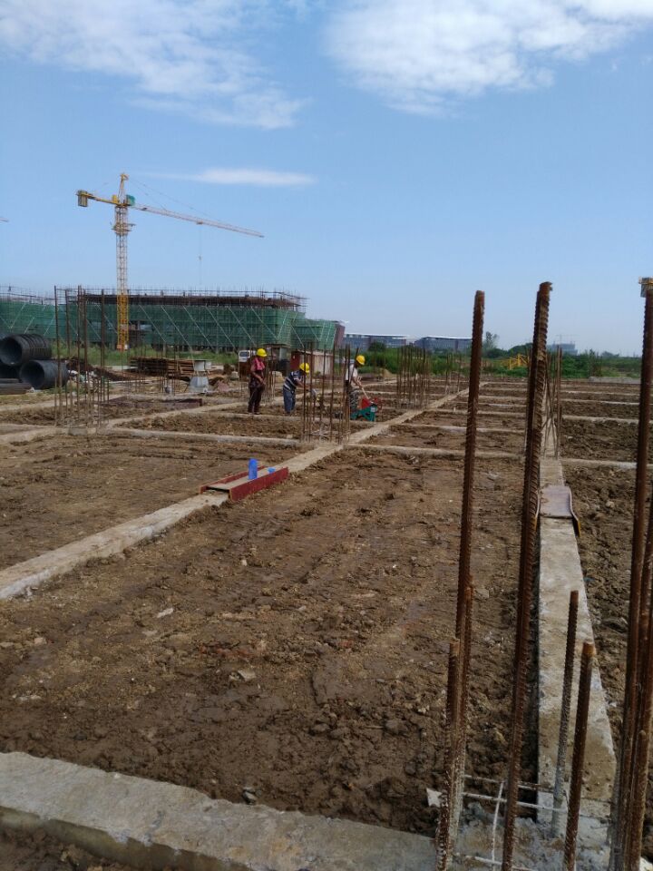 16. 行政楼:北侧一层钢筋绑扎完成,砼浇筑完成,南侧一层排架搭设完成50%,模板完成20%。