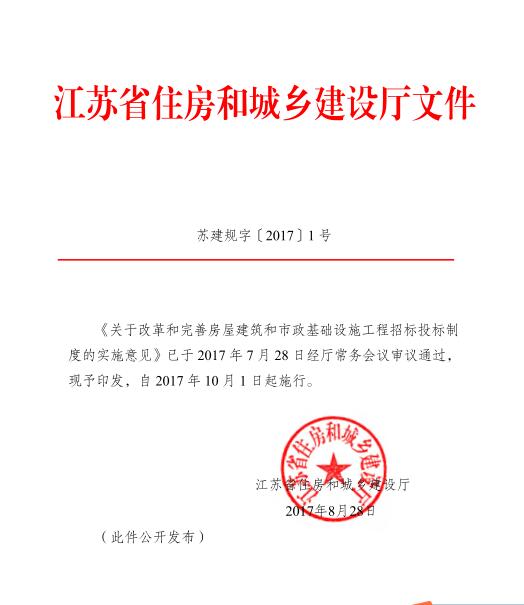 《关于改革和完善房屋建筑和市政基础设施工程招标投标制度的实施意见》(苏建规字[2017]1号)