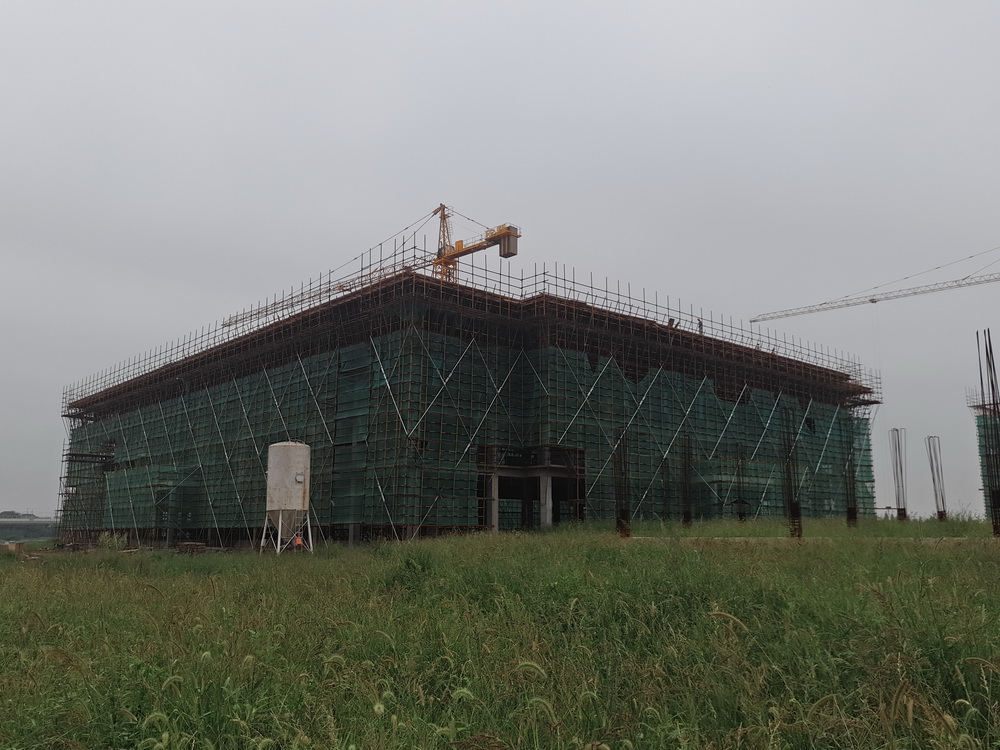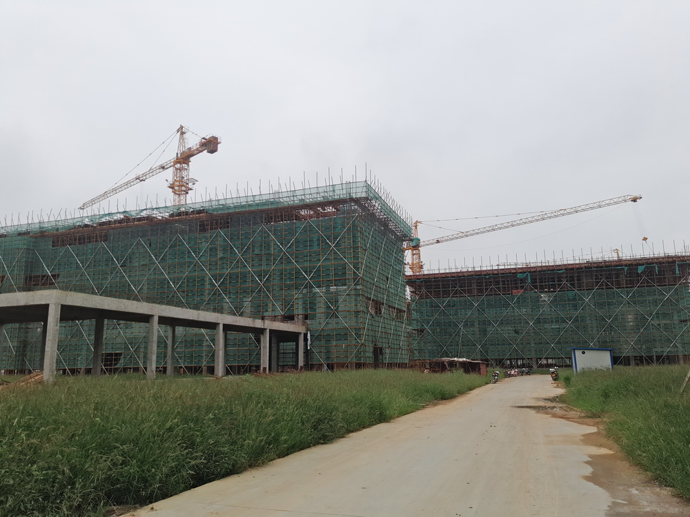 2. 理科楼二:斜屋面排架完成50%。