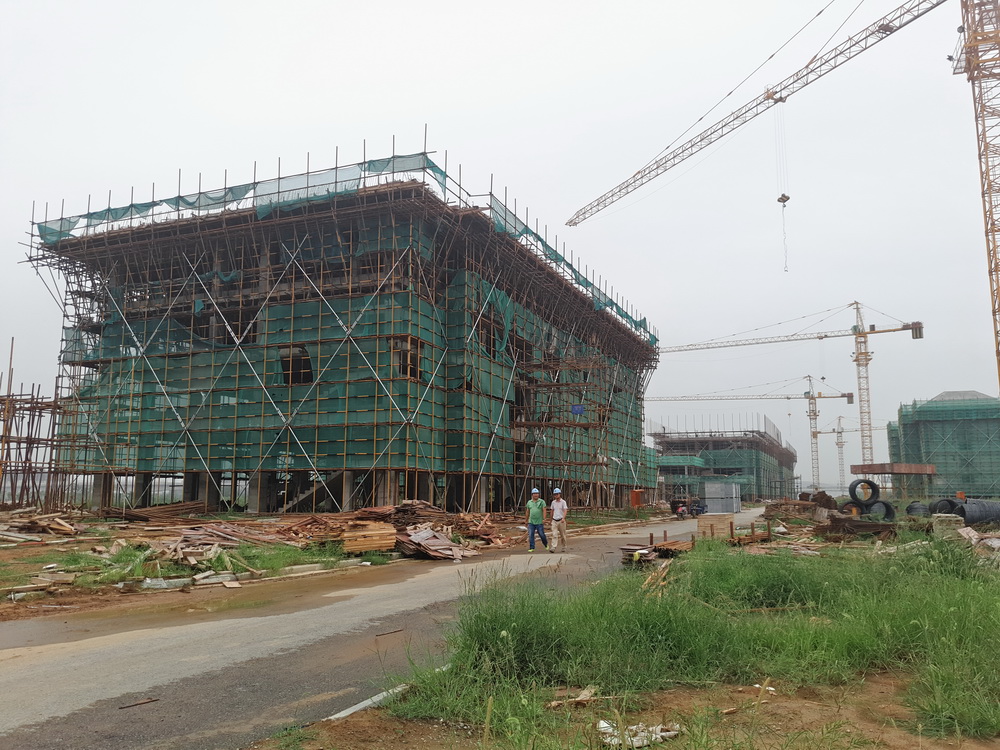 16. 行政楼:一层砼浇筑结束,二层排架、模板完成50%。