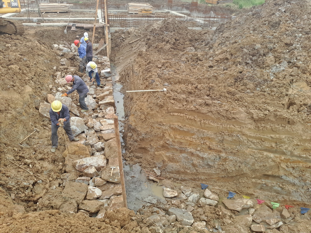 4. 木栈道处毛石挡墙开始施工;