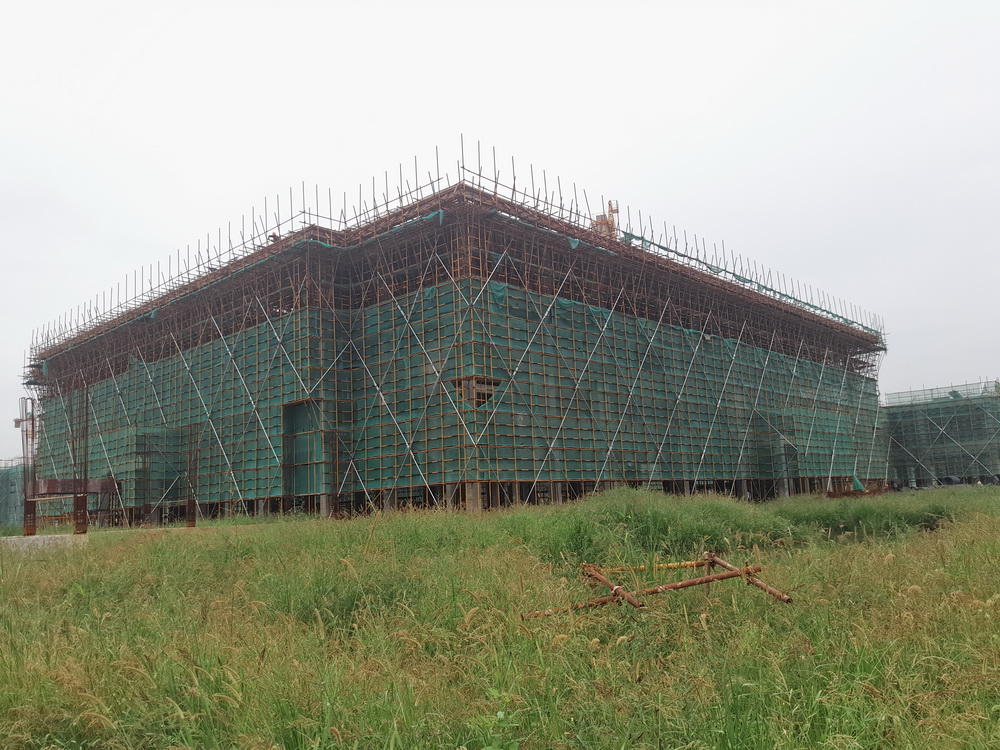 8. 艺术中心:二层排架搭设完成,柱子钢筋绑扎完成,模板完成80%。