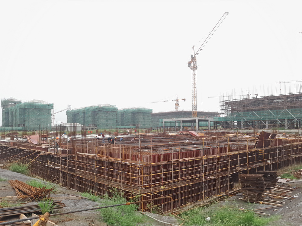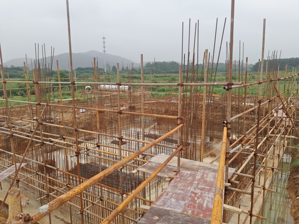 8. 大学生活动中心:二层模板完成,钢筋绑扎完成50%。