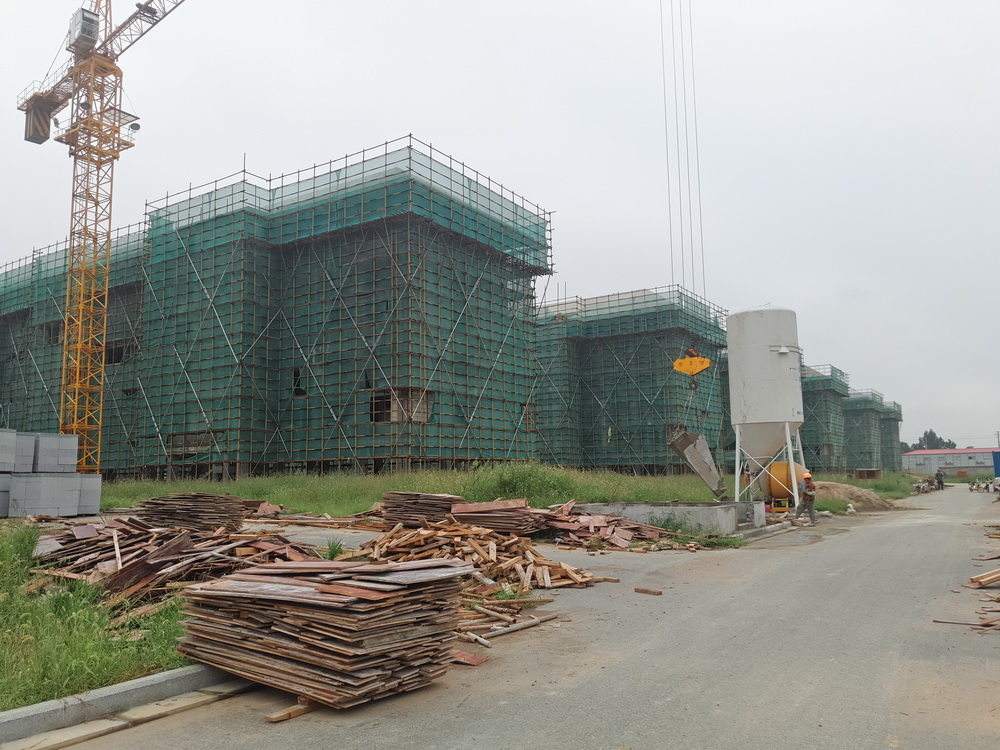 17. 学生宿舍组团:2#学生宿舍组团:屋面浇筑完成,斜屋面排架完成50%。3#学生宿舍组团:3-1、3-2斜屋面排架完成70%,3-3、3-4六层砼浇筑完成。4#学生宿舍组团:4-3、4-4四层楼面浇筑结束,5层排架完成50%。1#、5-7#学生宿舍组团:二次结构完成90%,各组团底层排污立管完成80%。