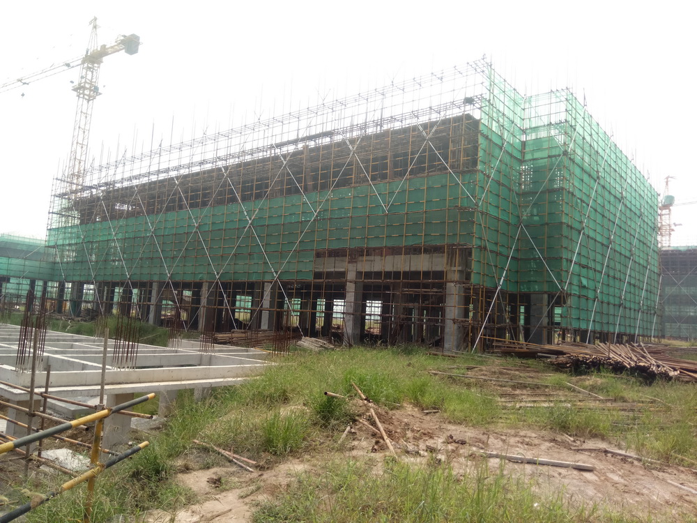 5. 大学生活动中心:二层排架搭设完成,二层模板完成安装,钢筋绑扎完成50%。