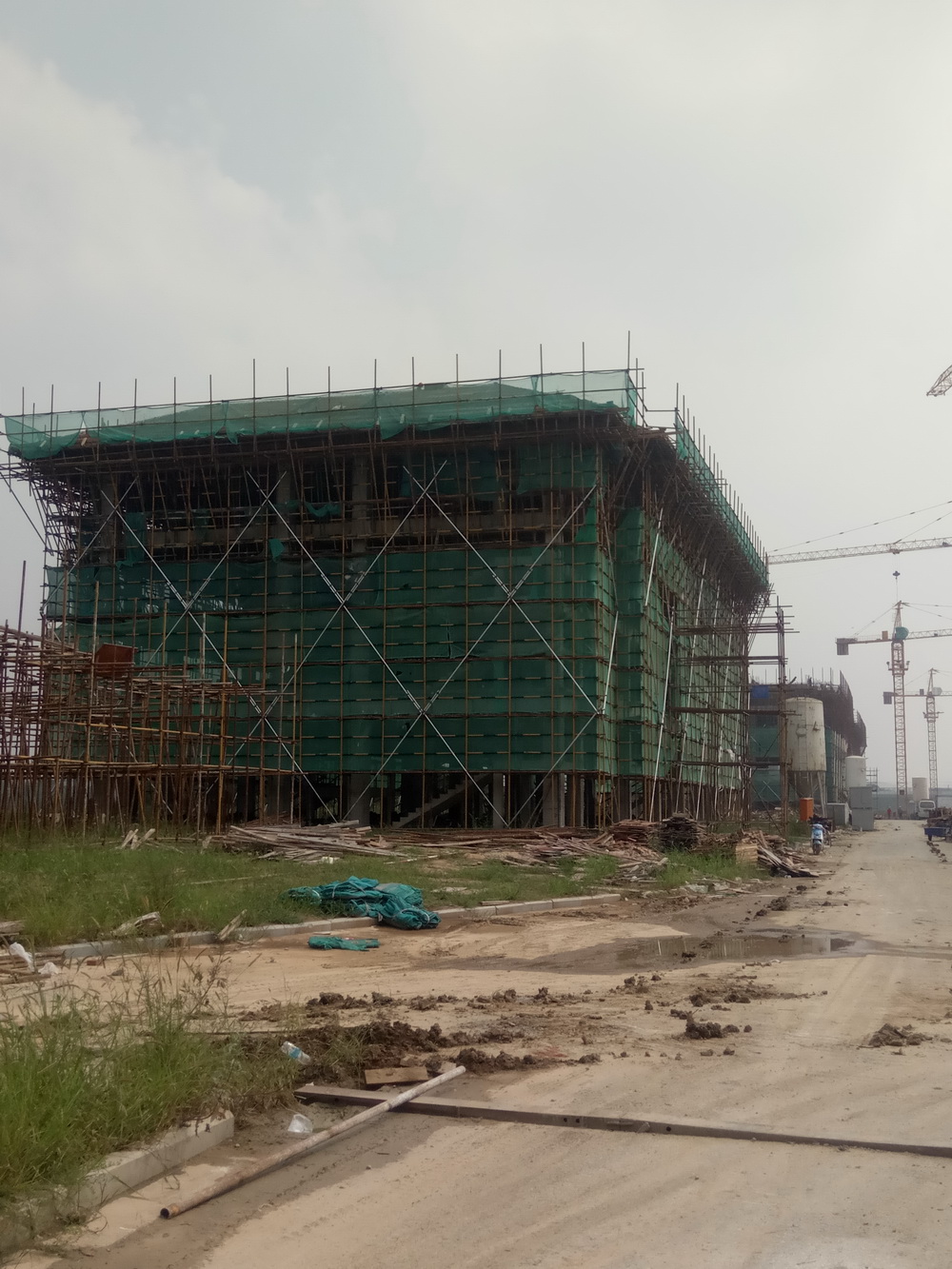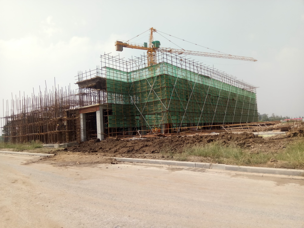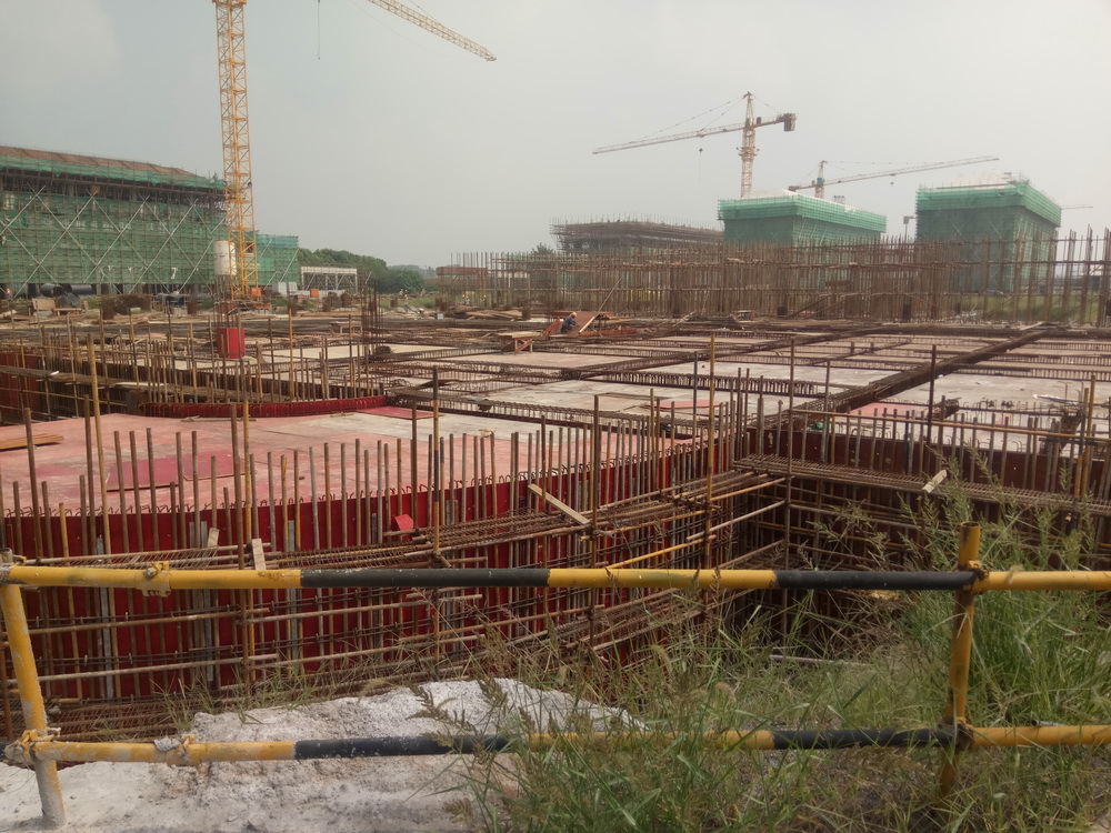 16. 行政楼:一层砼浇筑完成,二层排架搭设结束,二层平台钢筋绑扎完成,地下室完成回填土70%。
