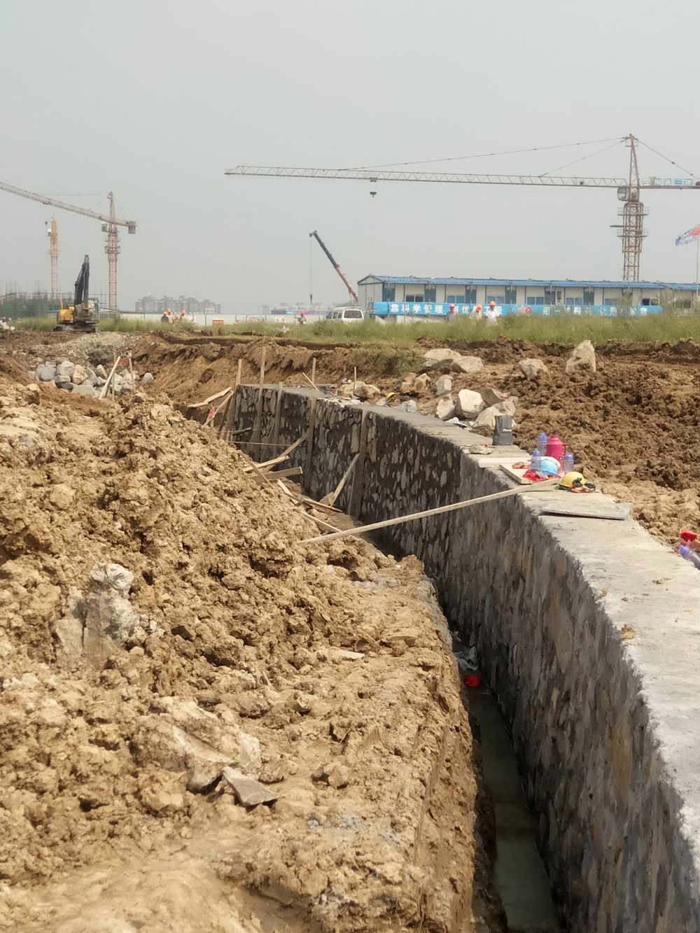 4. 中心湖处毛石挡墙砌筑中。