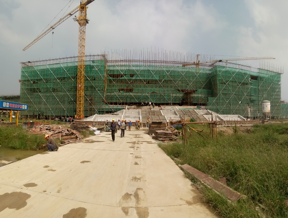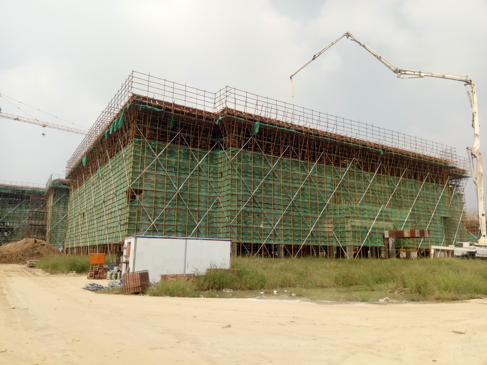 3. 图文信息中心:四层平面砼浇筑结束,五层排架搭设完成50%。