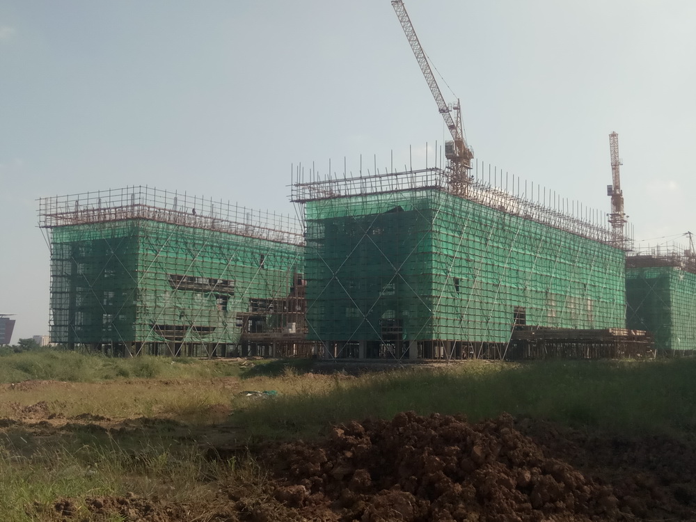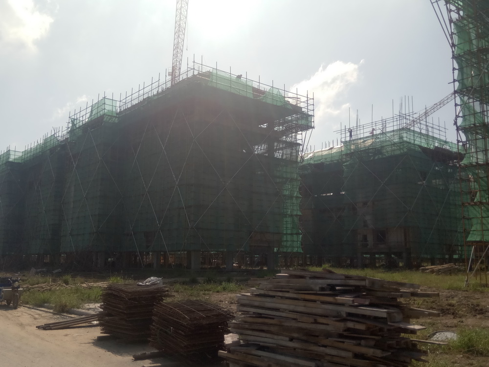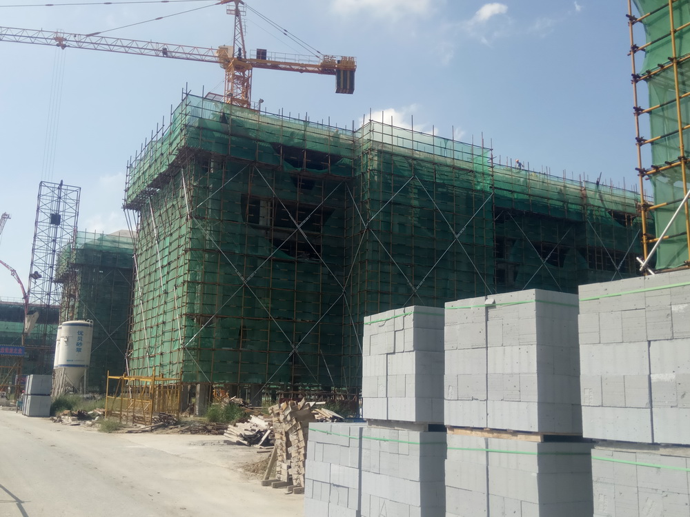 14. 学生宿舍组团:1#、5#、6#、7#学生宿舍组团二次结构完成90%,各组团排污立管完成80%。2#-2屋面砼浇筑完成,斜屋面排架搭设完成50%。3#-1、3#-2屋面排架搭设完成70%。3#-3、3#-4六层面砼浇筑完成。4#-3、4#-4四层平面砼浇筑完成,五层排架搭设。