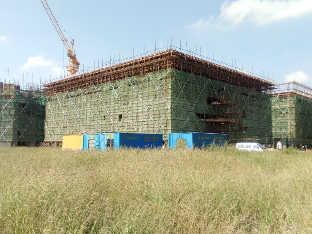 4. 文科楼一:屋面钢筋绑扎完成,砼浇筑完成;文科楼二:五层平面钢筋绑扎完成,砼浇筑完成,屋面排架搭设完成50%。