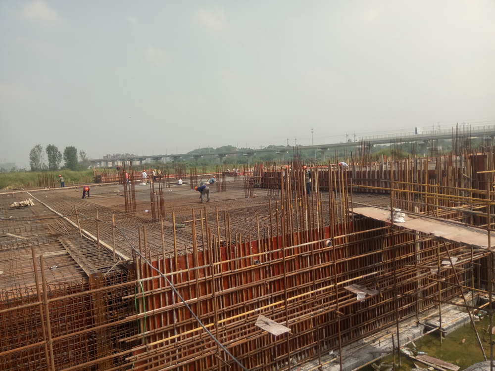 1. 溢流井板墙、模板、钢筋施工;