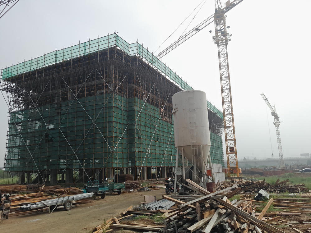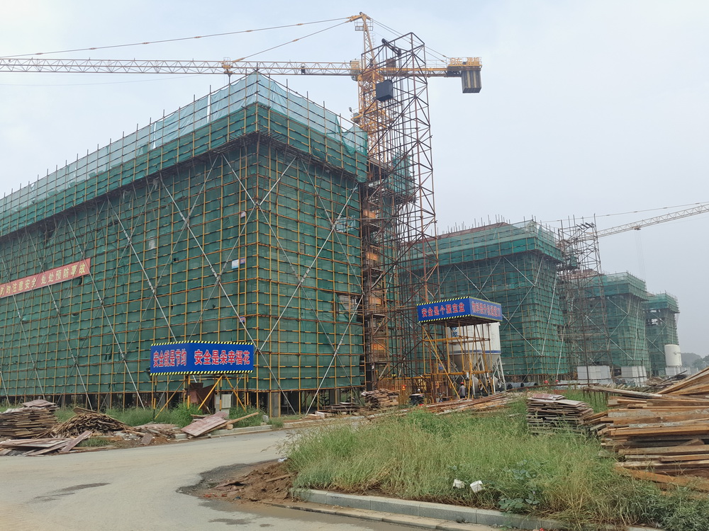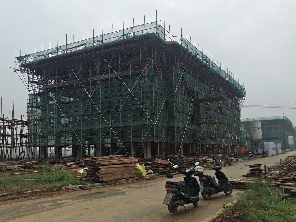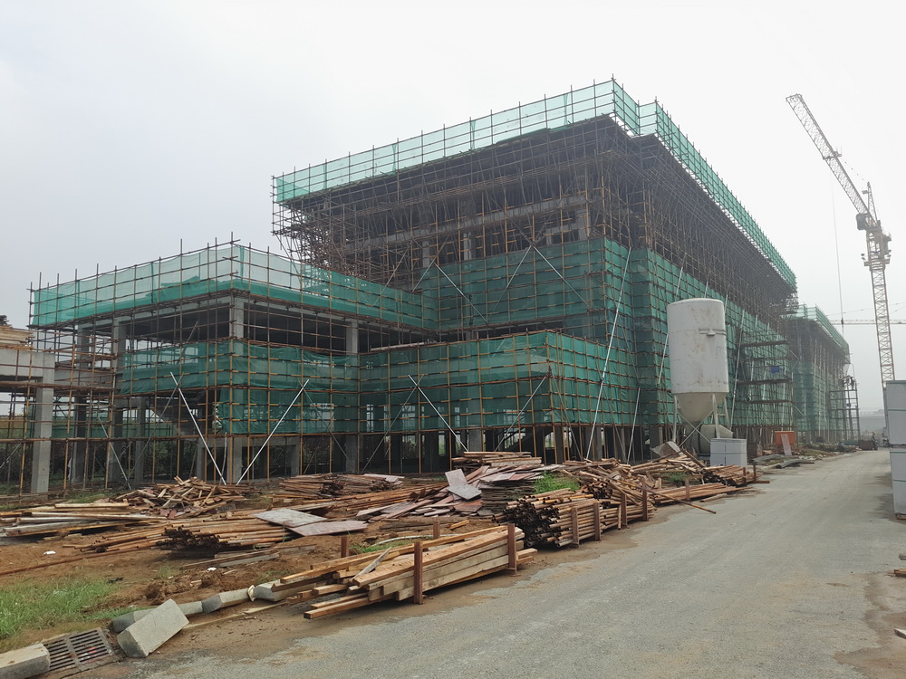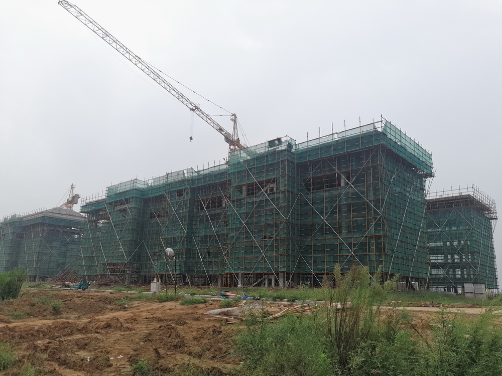 16. 行政楼:北楼三层排架完成,模板完成50%,南楼排架搭设完成,模板安装完成,钢筋绑扎完成50%。