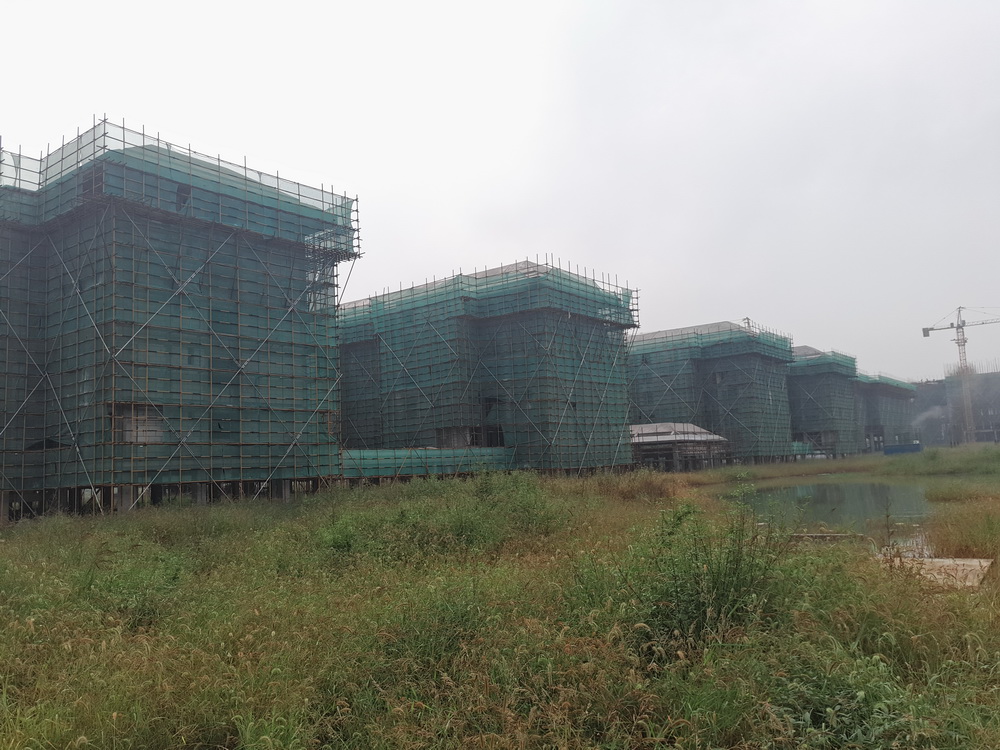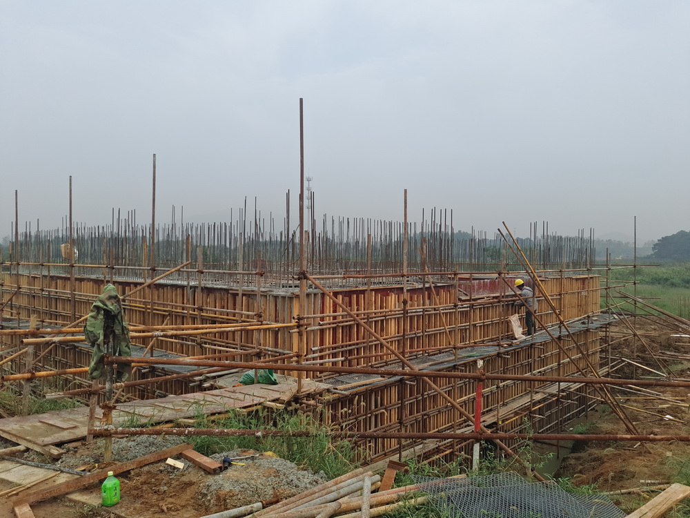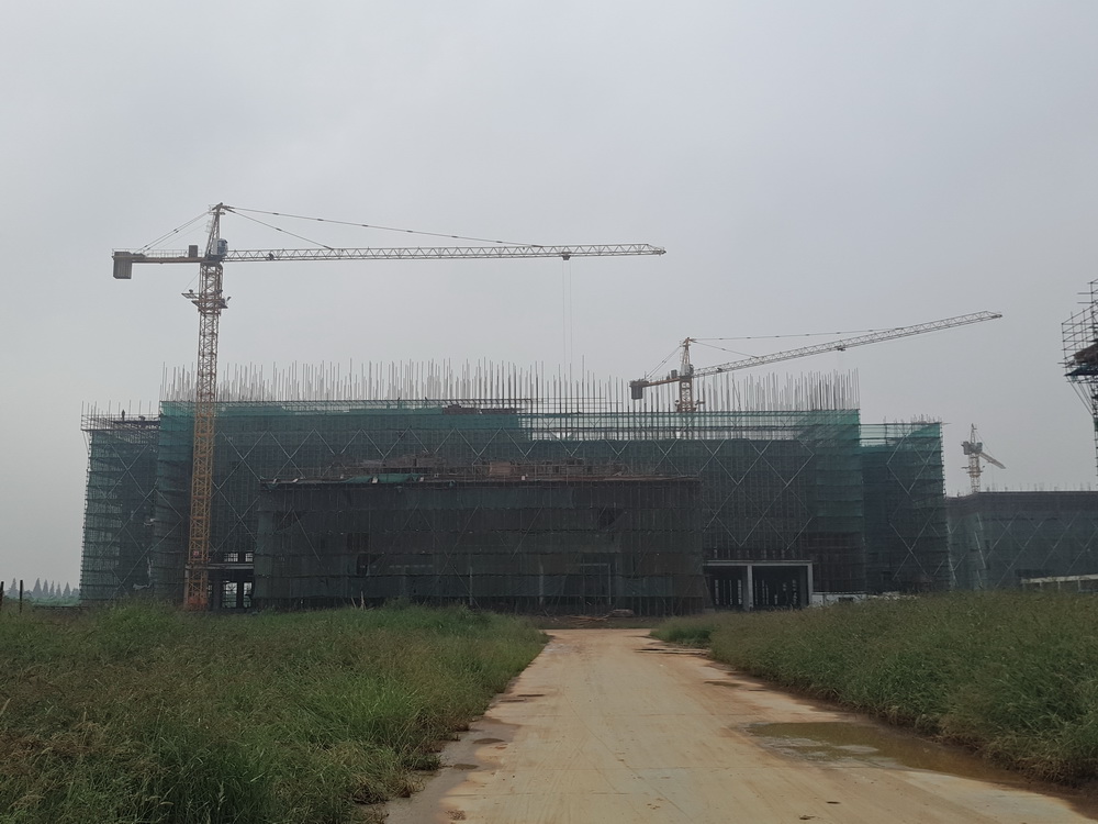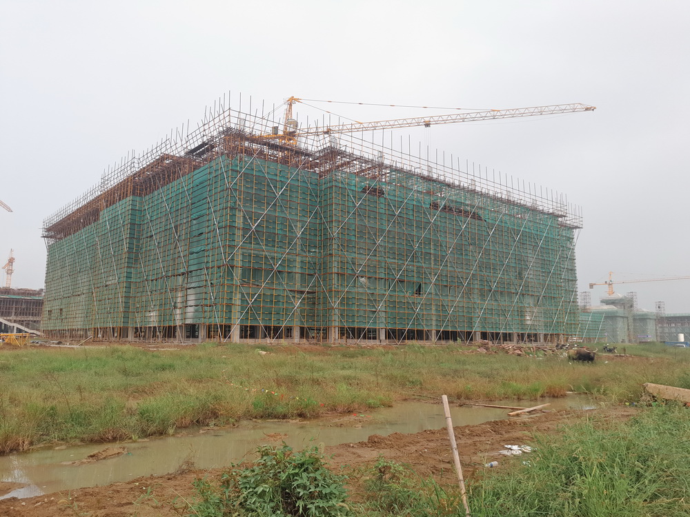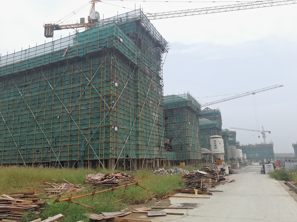 16. 行政楼:北楼三层排架完成,模板完成50%,南楼排架搭设完成,模板安装完成,钢筋绑扎完成50%。