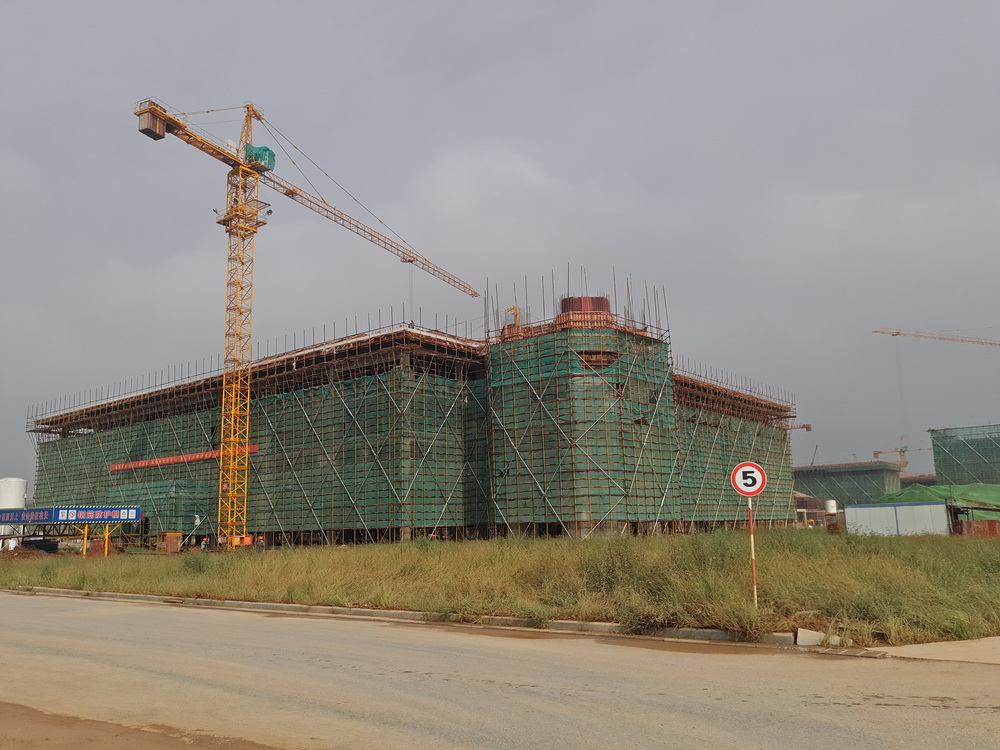 12. 一食堂:顶板砼建筑完成,一层排架搭设50%,模板完成30%。