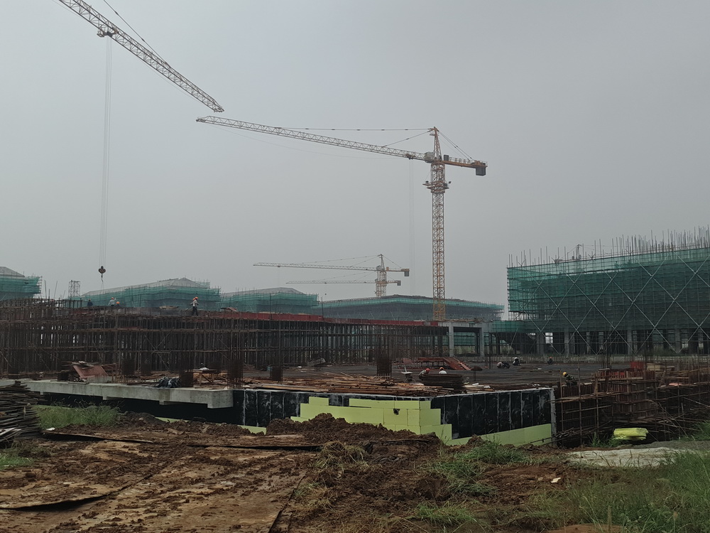 16. 行政楼:一层砼浇筑完成,二层排架搭设结束,二层平台钢筋绑扎完成,地下室完成回填土70%。