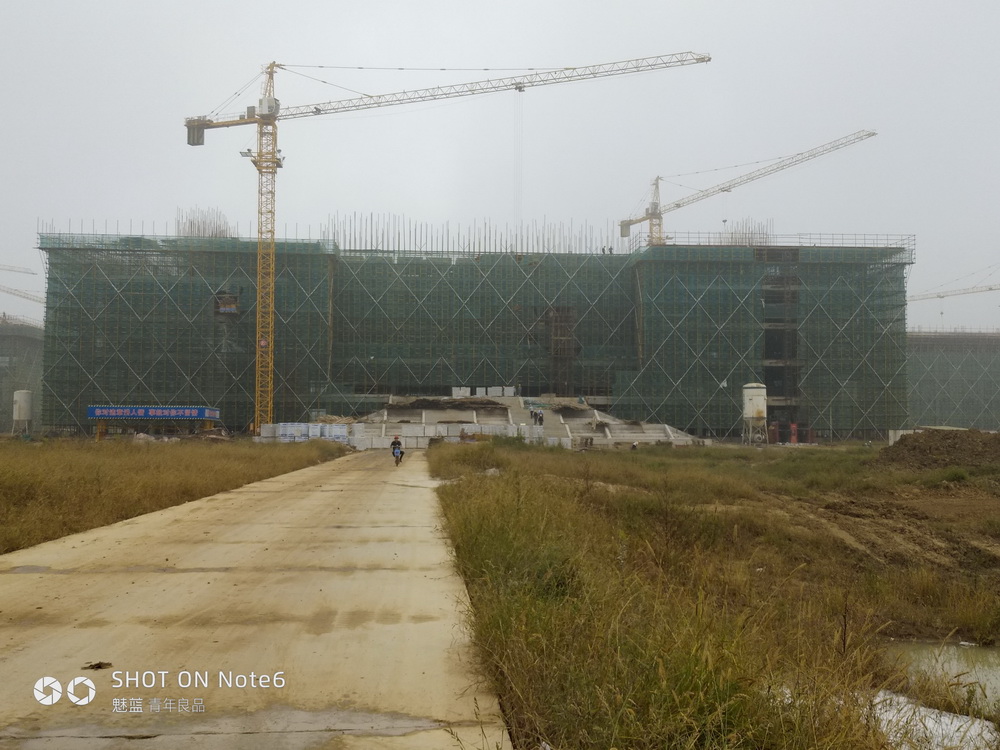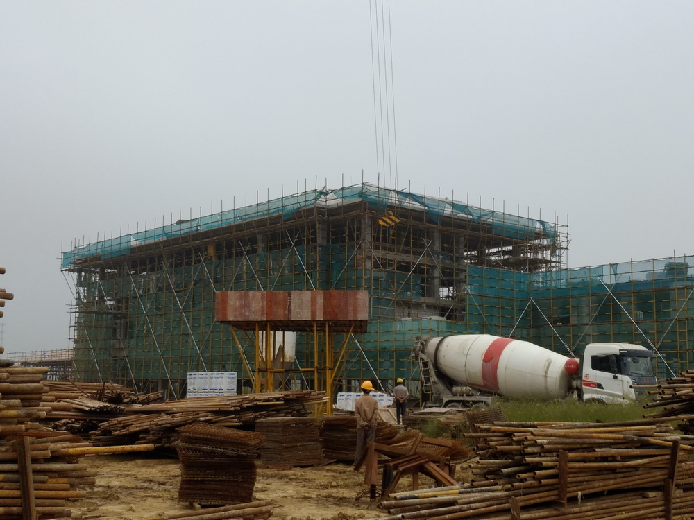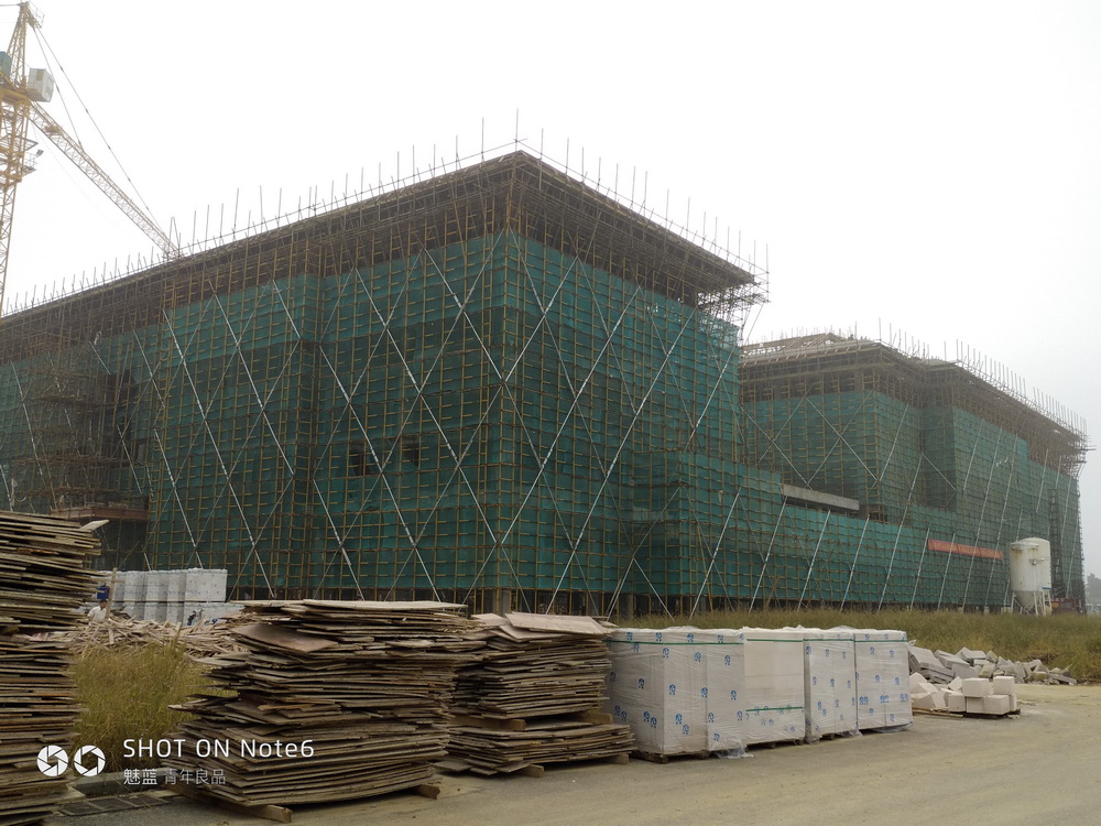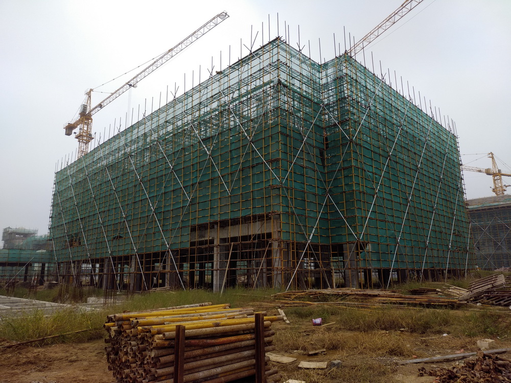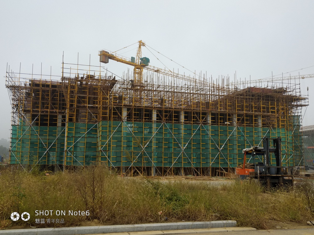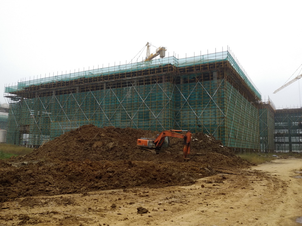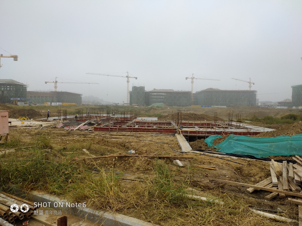 3. 图文信息中心:五层排架搭设完成,钢筋绑扎完成70%,东段砼浇筑完成;