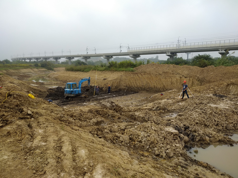2. 杏坛讲学场开挖砖挡墙,砼挡墙等基础;