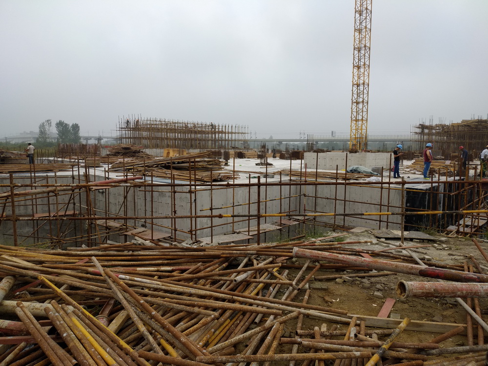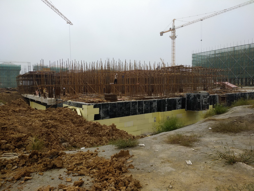 14. 留学生公寓:地下室西侧一层排架搭设结束,模板安装完成50%,东侧一层排架搭设结束,模板完成,钢筋绑扎完成50%;