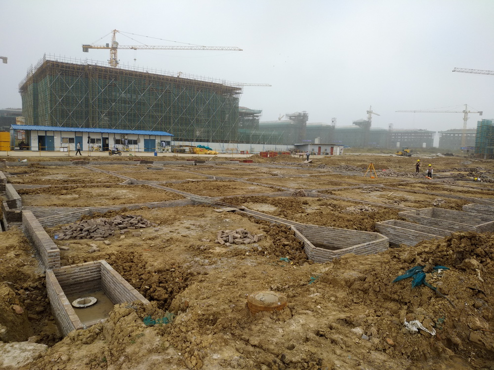 2. 体育馆8-23轴承台及地梁挖土完成80%;