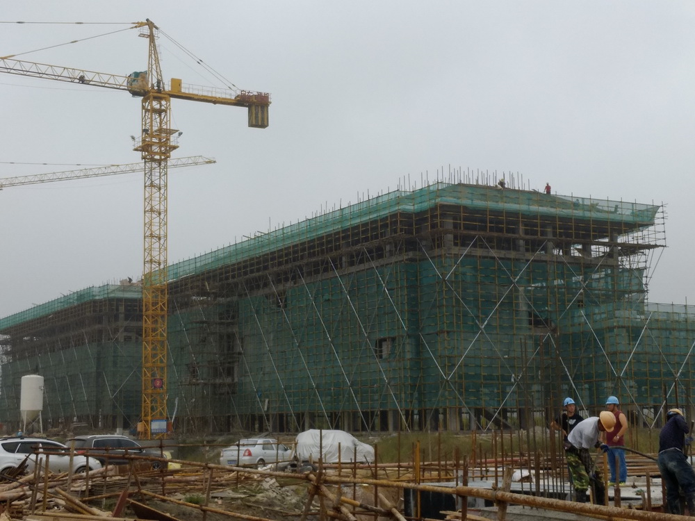12. 一食堂:一层排架搭设,模板完成80%,钢筋绑扎完成50%;