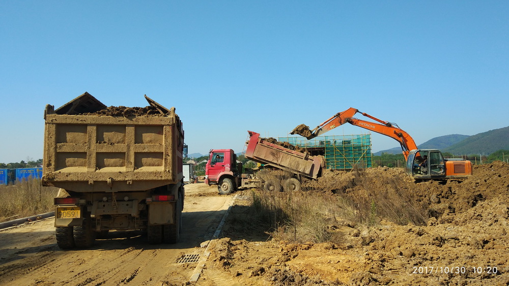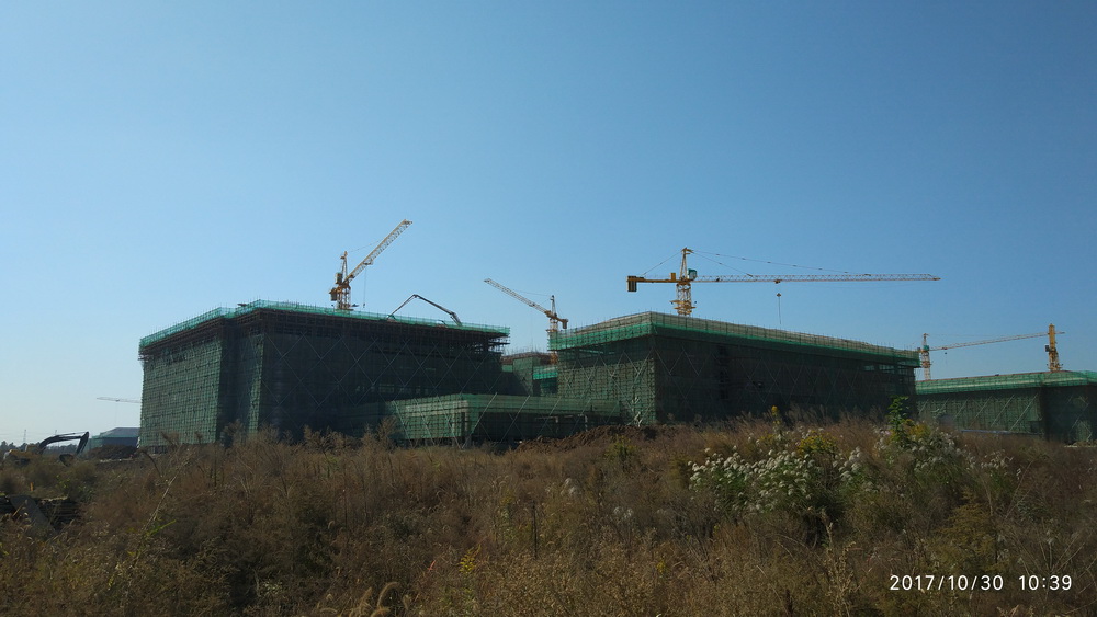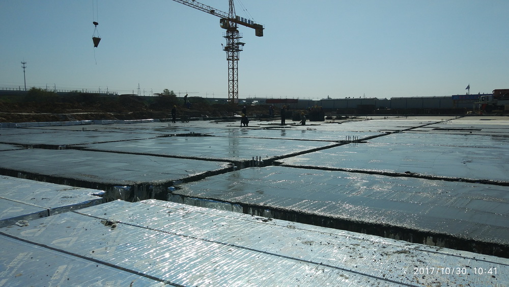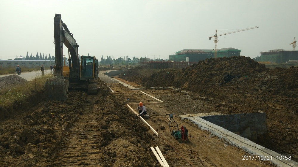 2017.10.30体育馆完成防水卷材铺装,景观水系开始开挖