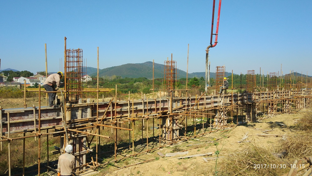 五、留学生公寓、围墙、文科楼进行混凝土浇筑。