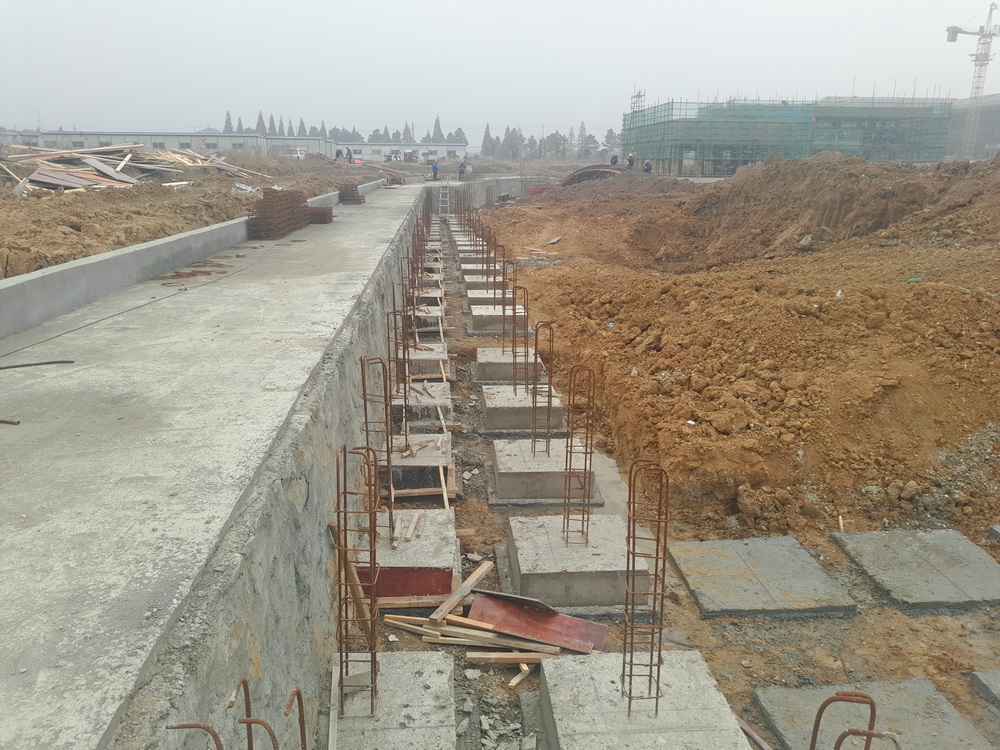 7. 大学生活动中心:一层土方回填,屋面排架砼浇筑完成;