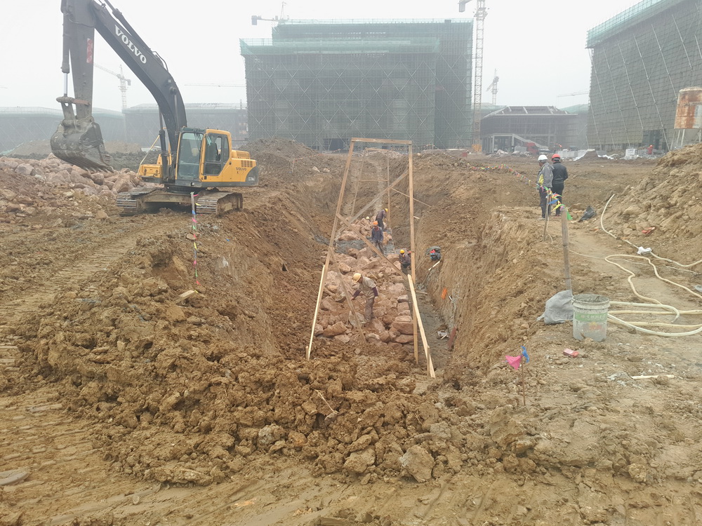 3. 图文信息中心:构架层排架搭设,二、三层墙体砌筑、土方回填5;