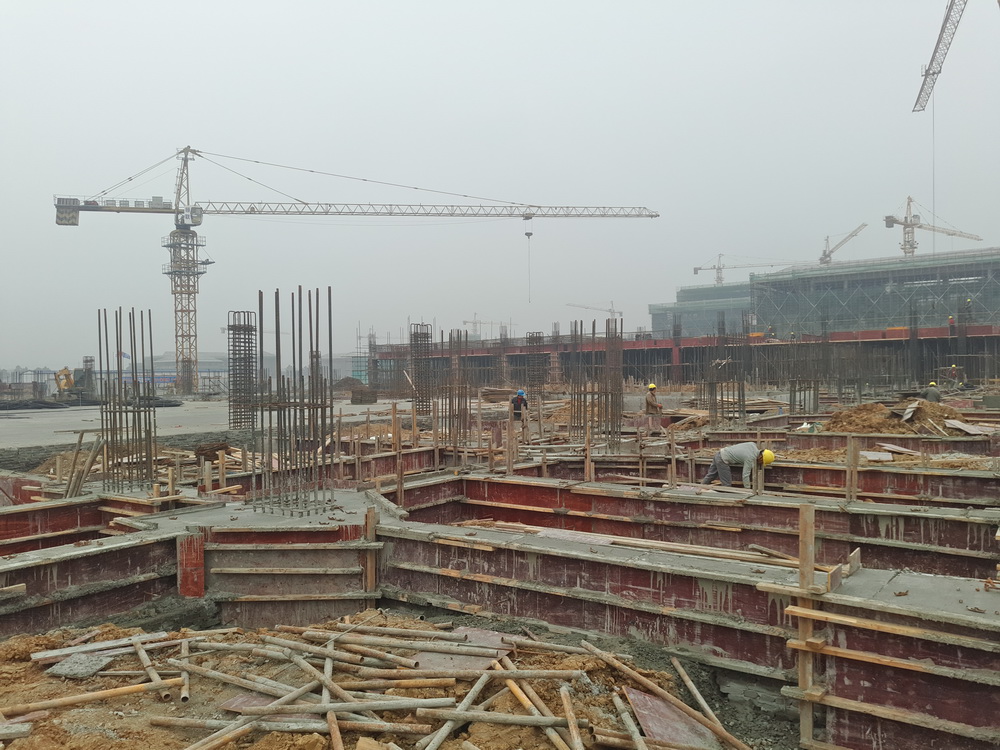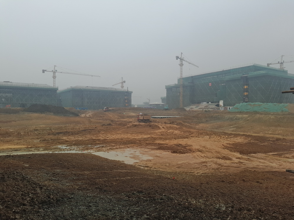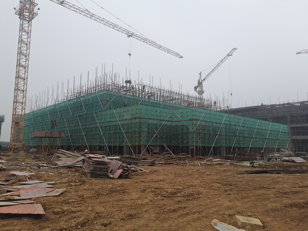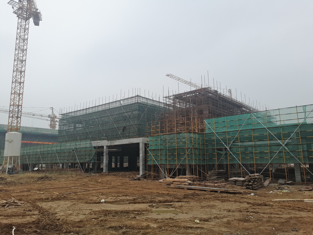 8. 大学生活动中心:一层土方回填,北侧三层排架搭设,模板完成50%;