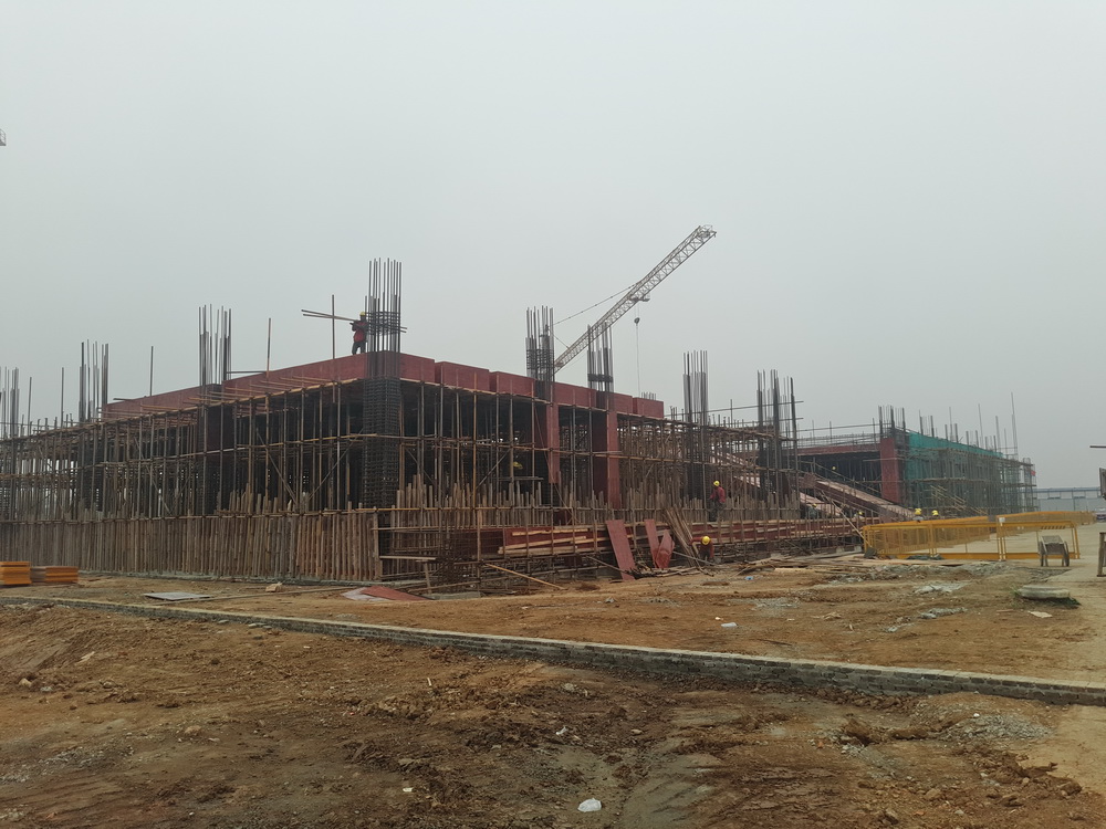 1. 图文信息中心:构架层排架搭设完成,模板完成70%,砼浇筑50%,二三层墙体砌筑,一层土方回填;