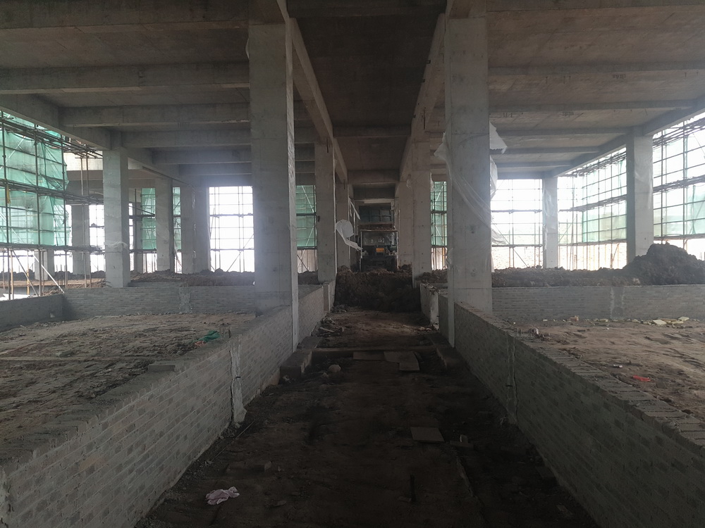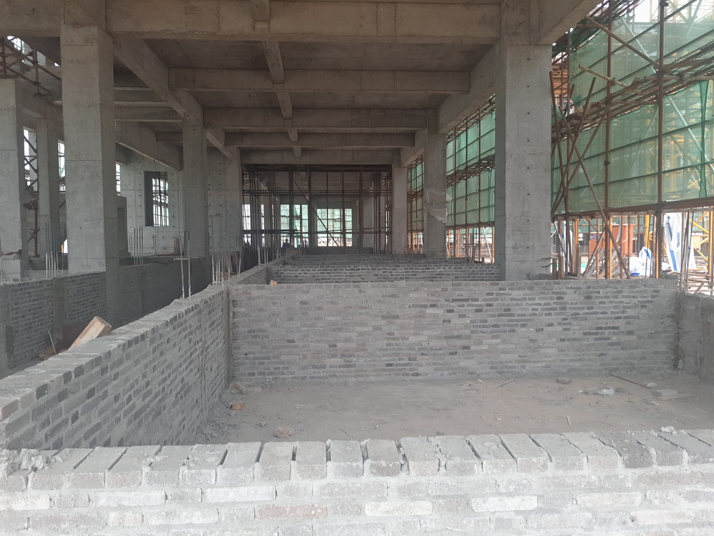 7. 公共教学楼二:斜屋面浇筑完成,二三层墙体砌筑,一层土方回填;