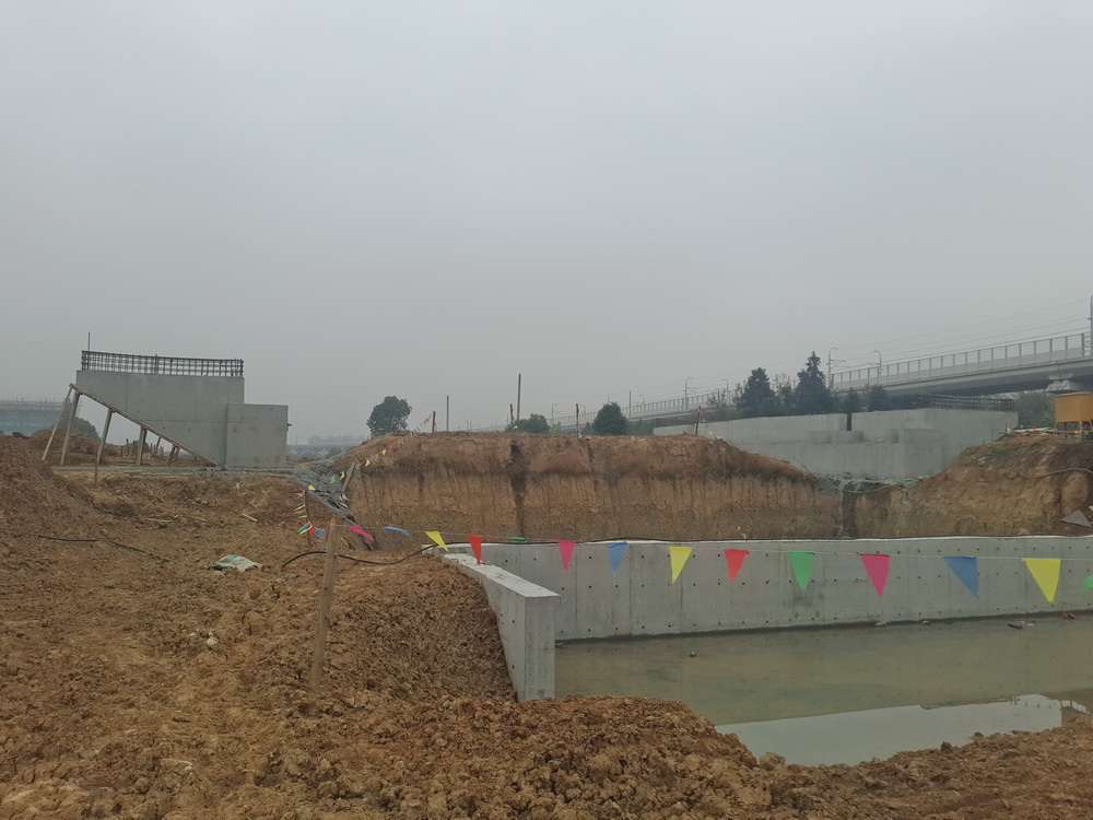 4. 文科楼东侧过河通道挡墙砌筑50%;