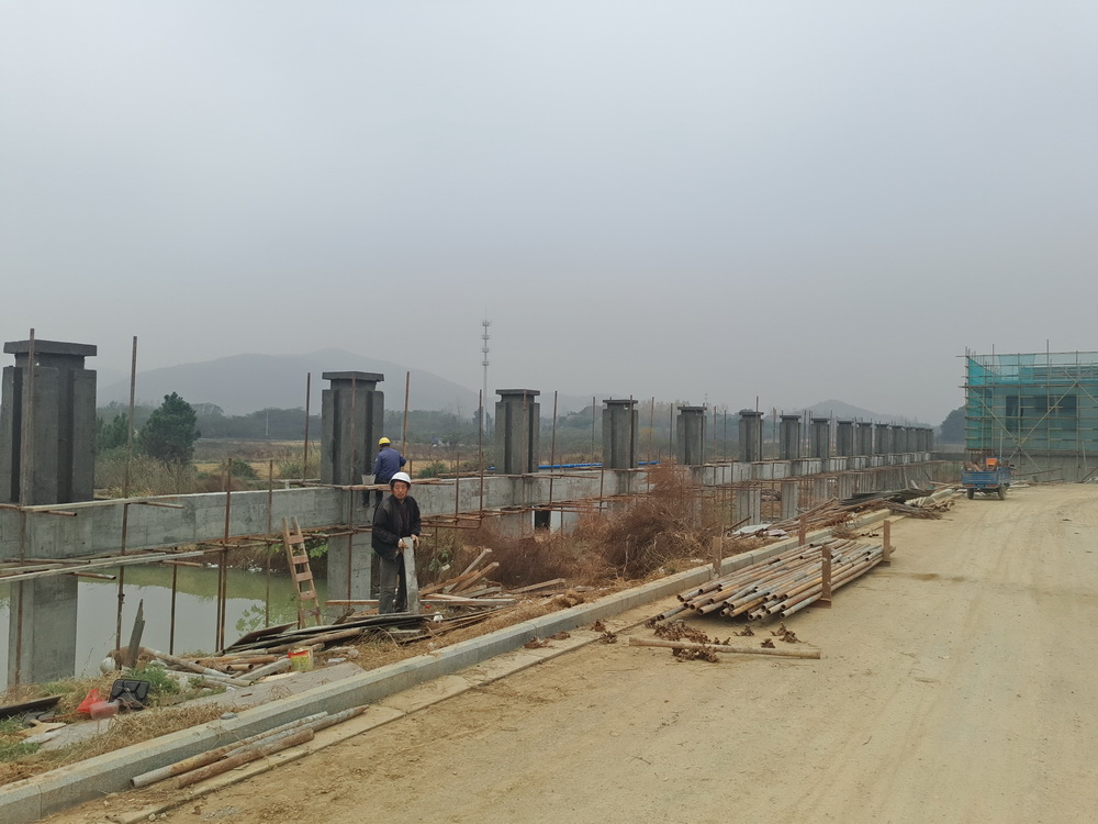 17. 桥梁:西桥梁台帽、台背、桥耳砼浇筑结束;