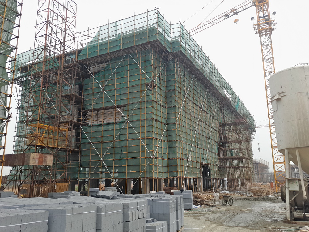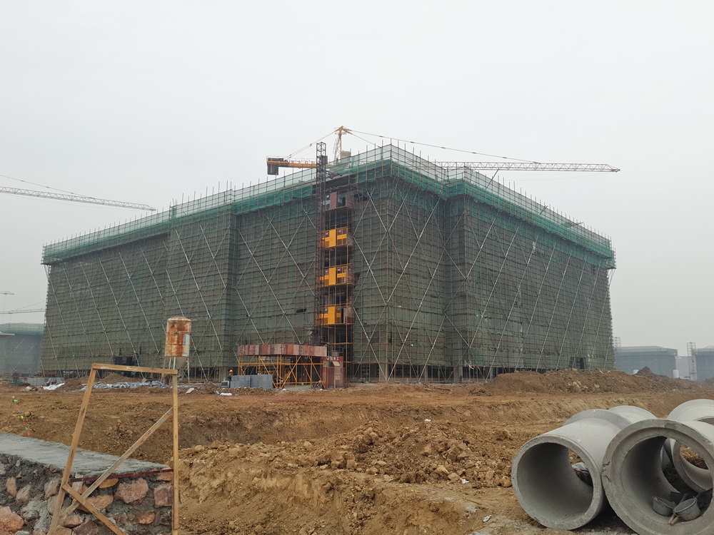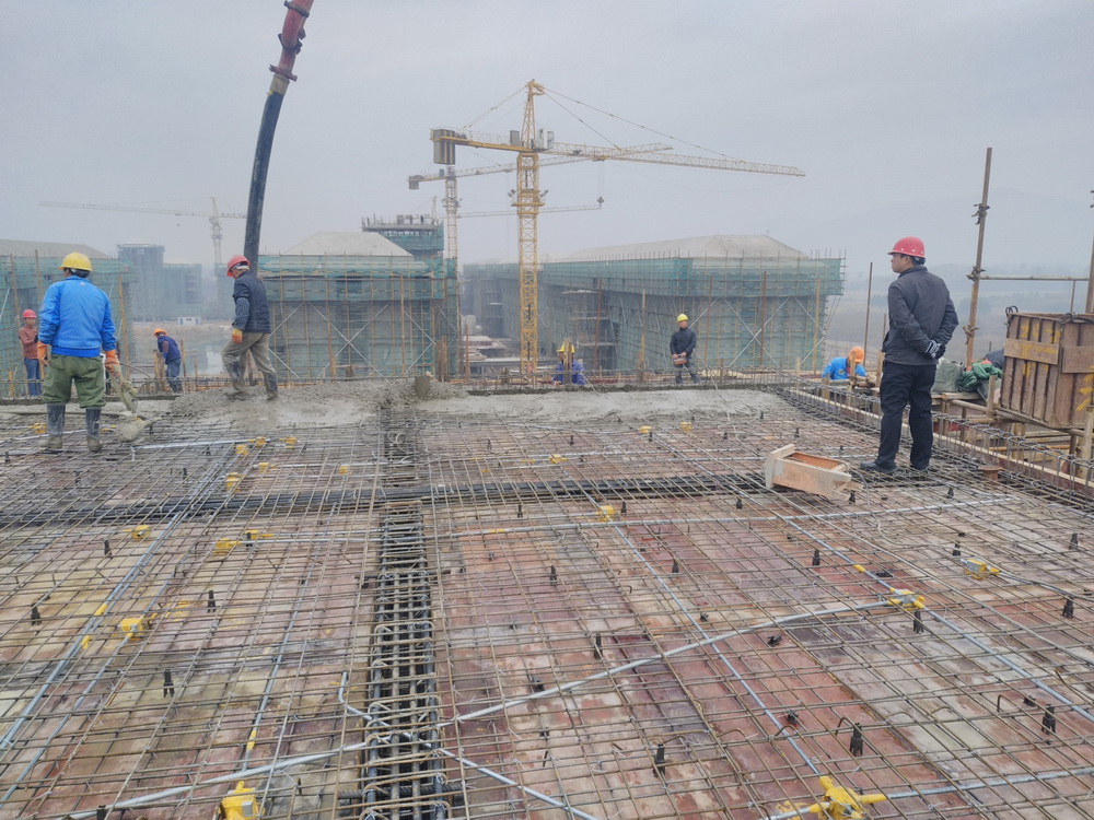 2017年11月28日,随着溧水校区留学生公寓、一食堂屋顶混凝土的浇筑完成,从2017年2月下旬开始,经过9个多月的奋战,克服原材料价格上涨、供应短缺、高温酷暑天气等困难后,由南通二建承建的溧水校区28万平方米的主体建筑全部完成封顶。