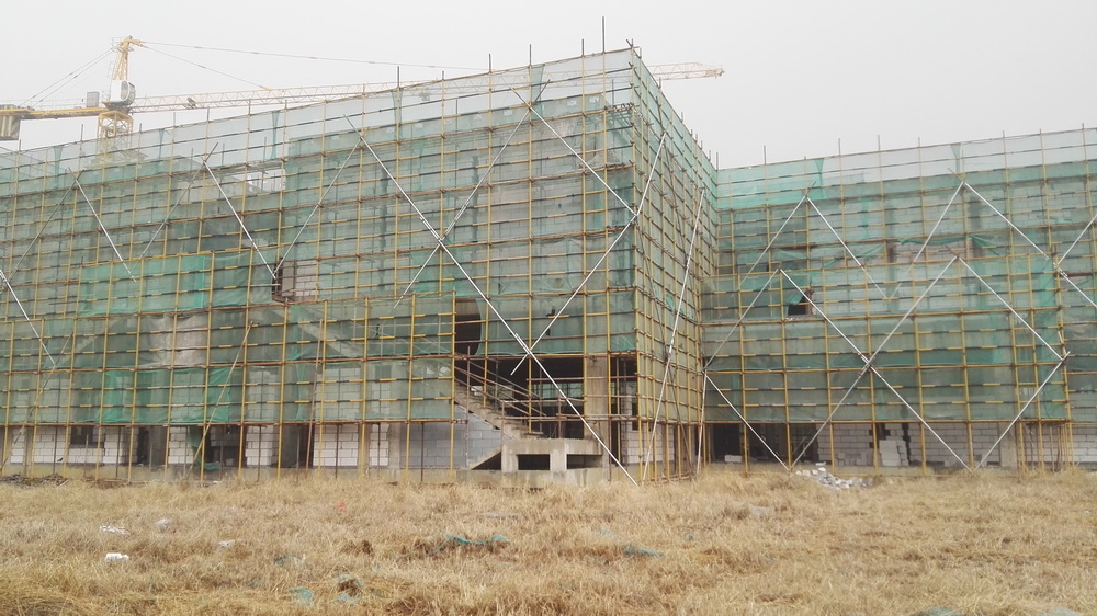 7. 大学生活动中心:预应力灌浆完成,一层土方平整结束,二层墙体砌筑;