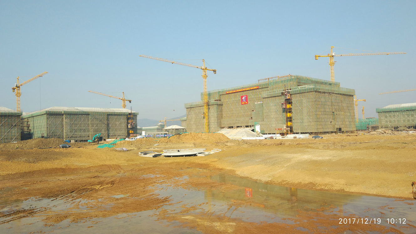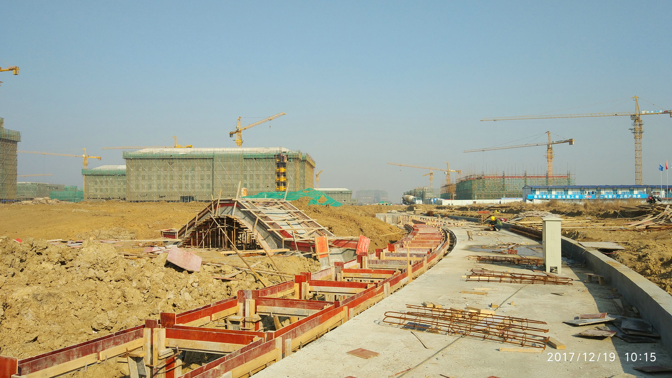 中心湖区域土方开挖成型,杏坛讲堂浇筑完成。