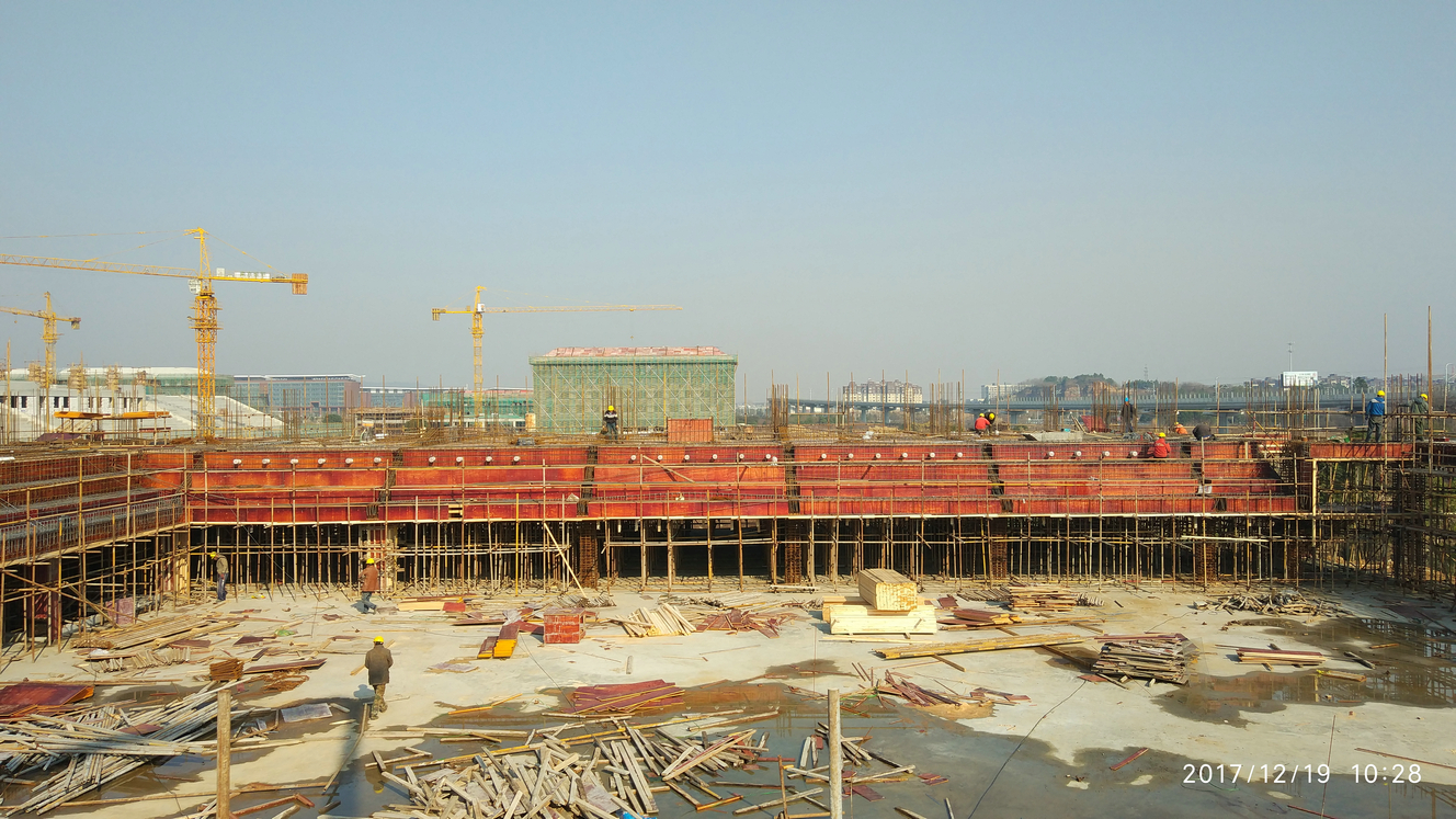 2017.12.19体育馆主馆二层混凝土进行浇筑