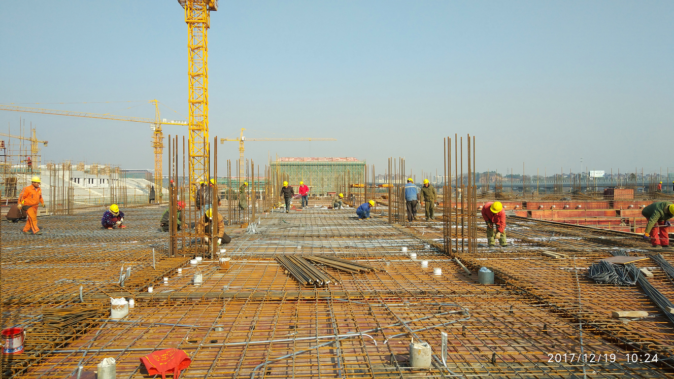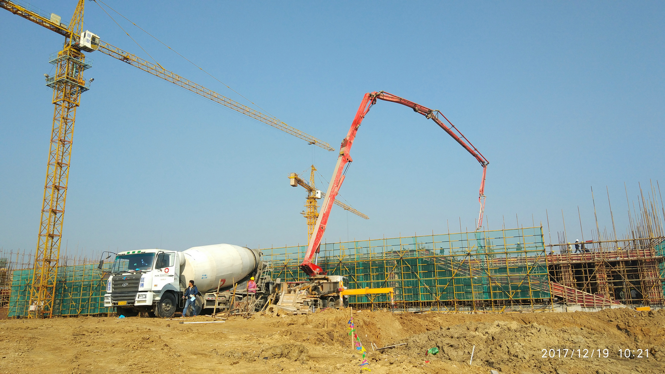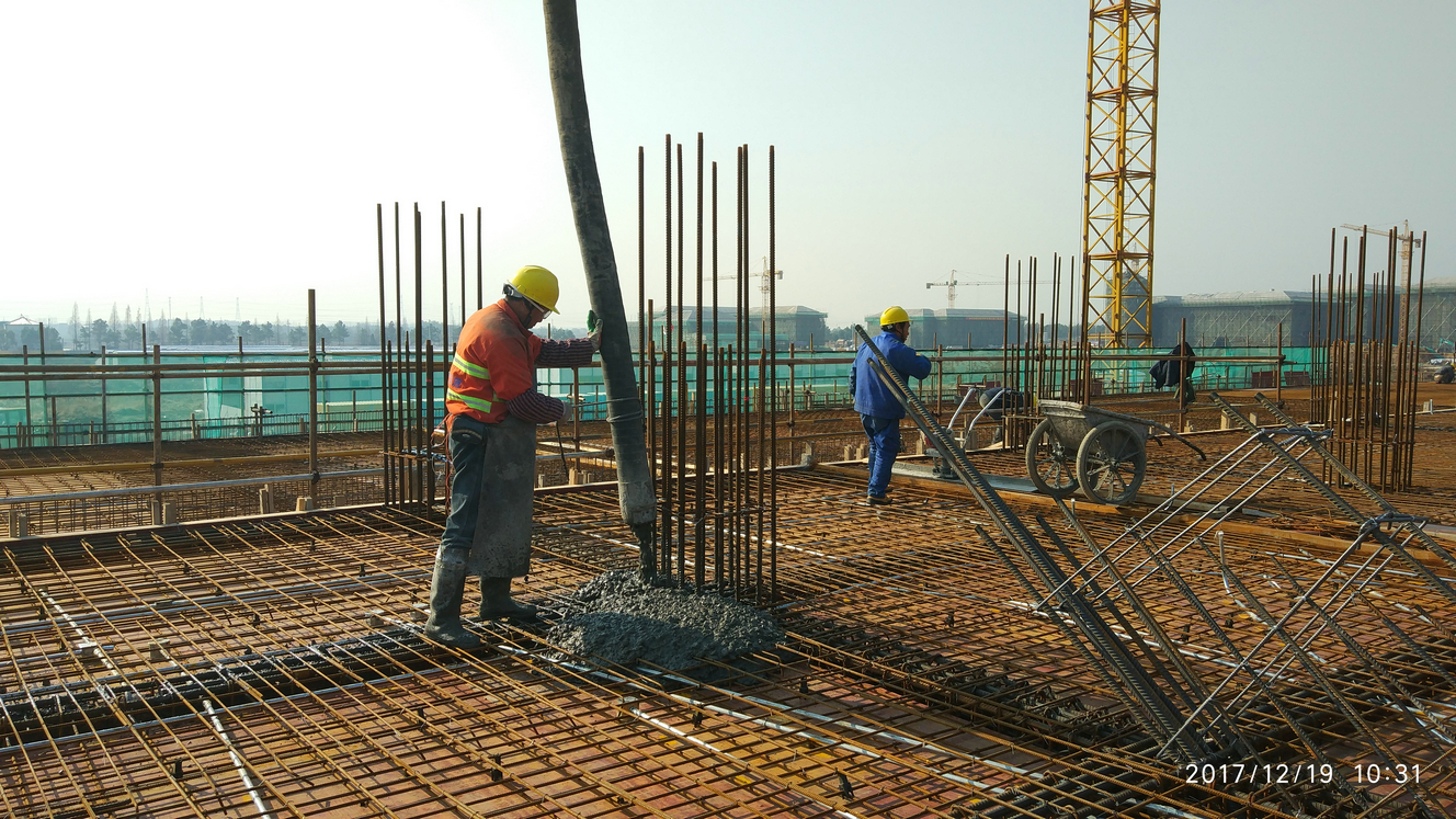 体育馆主馆二层混凝土浇筑,大约需要700多方混凝土,预计今天晚上完成。