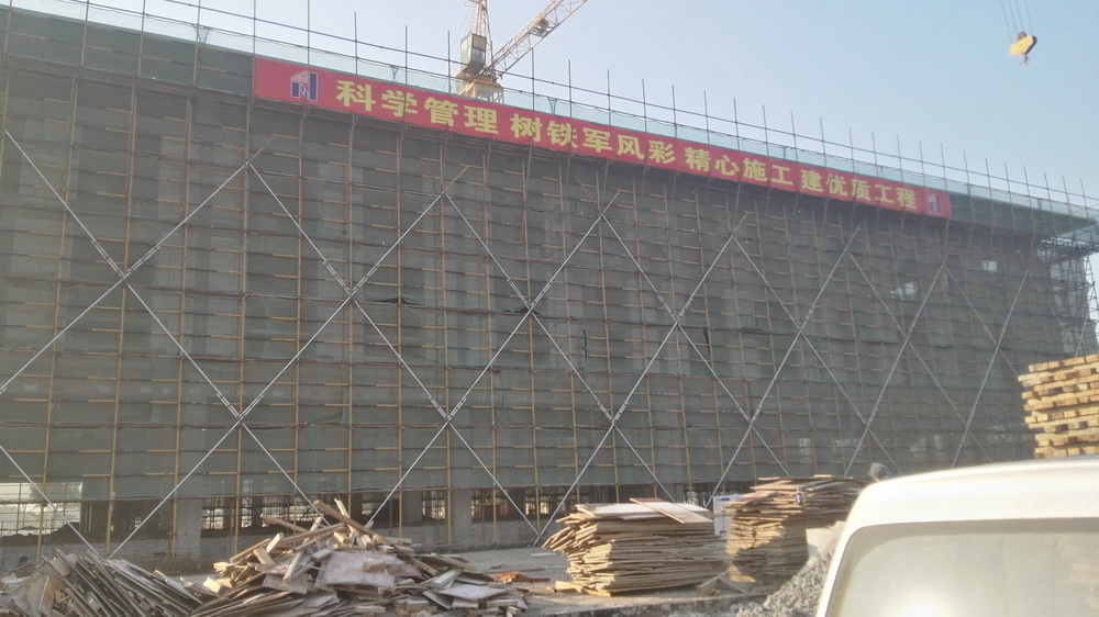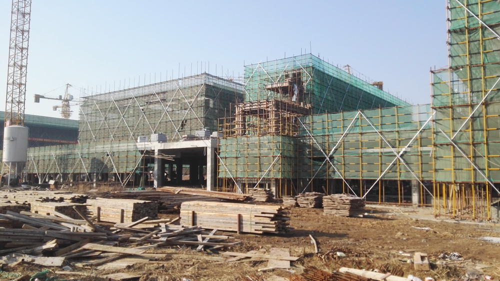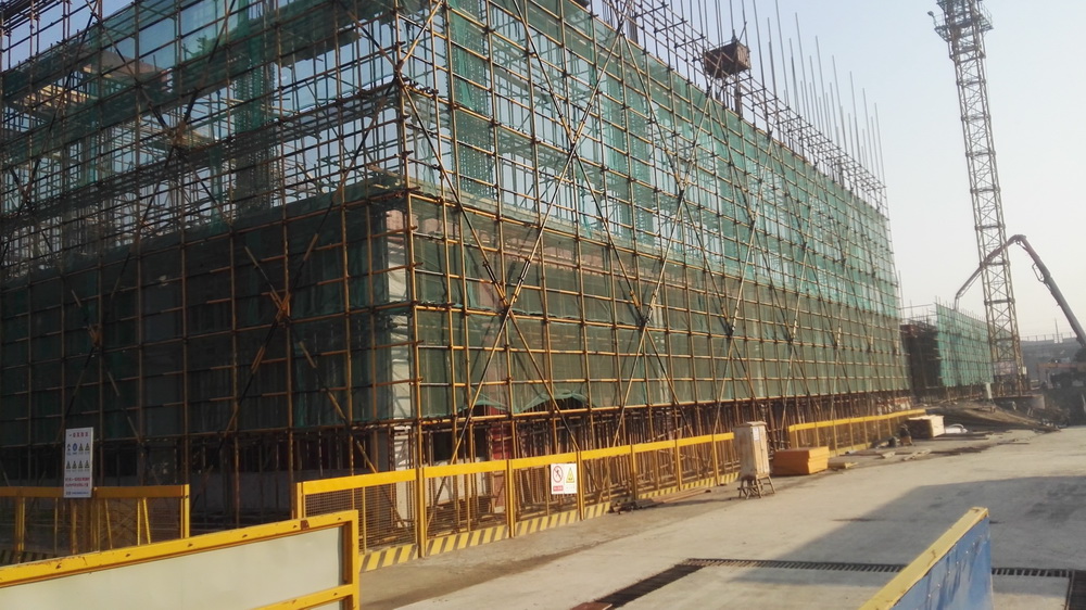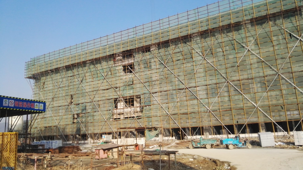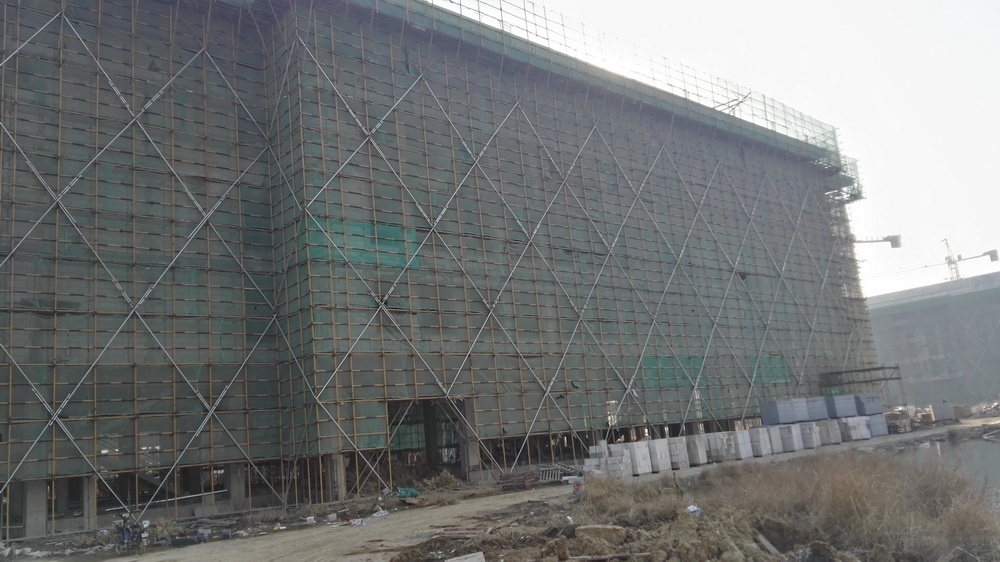 5. 大学生活动中心:高支模脚手架拆除,一、二层墙体砌筑。