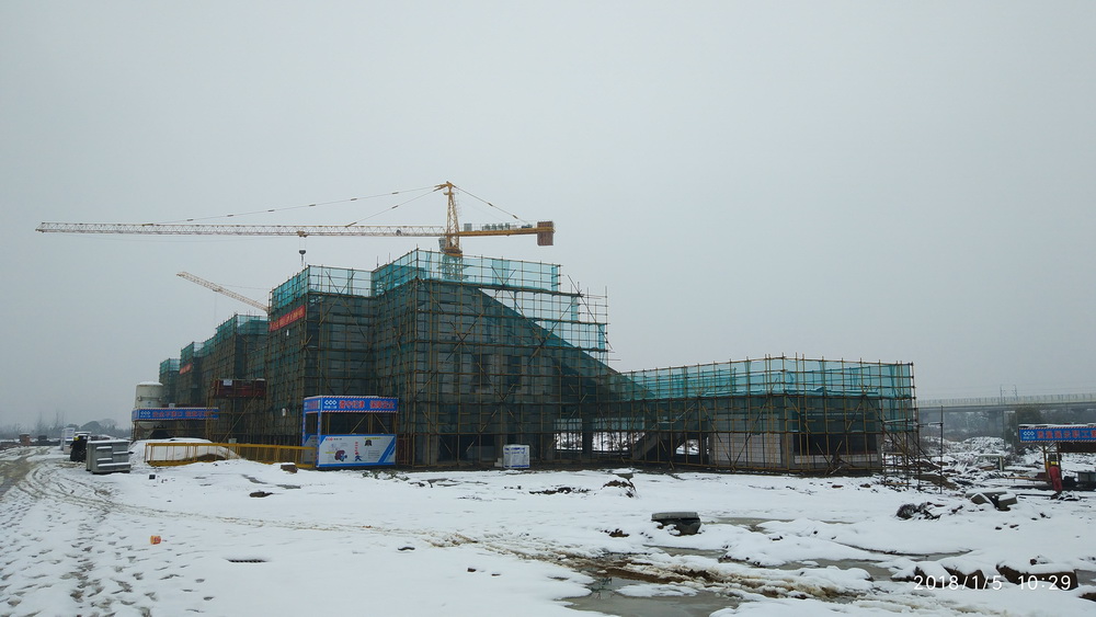 5. 大学生活动中心:一、二层墙体砌筑30%