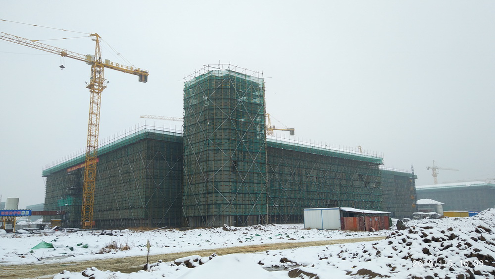2. 图文信息中心:二、三、四层墙体砌筑90%,一层墙体砌筑完成50%