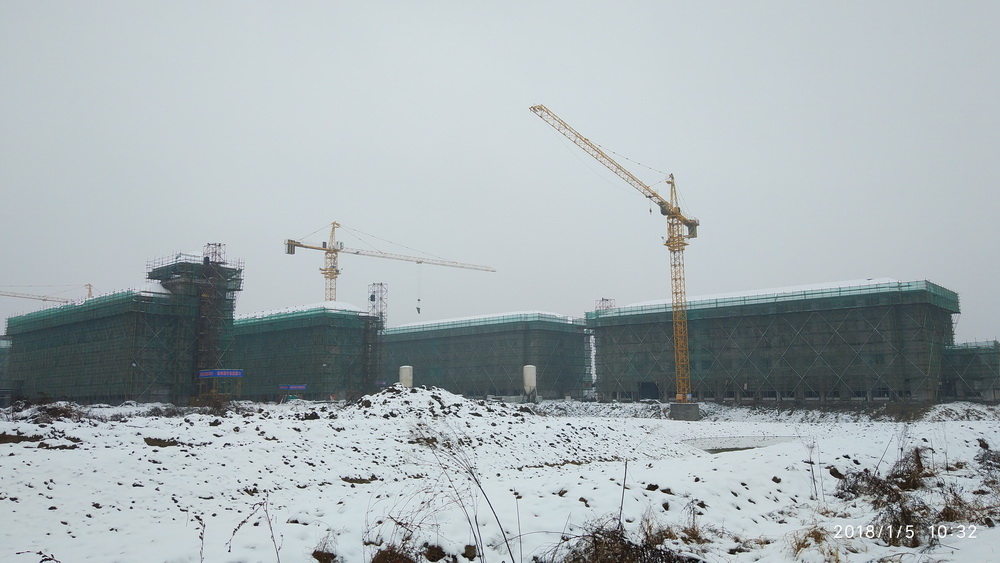 2. 图文信息中心:一层墙体砌筑70%,二层墙体以上砌筑完成70%