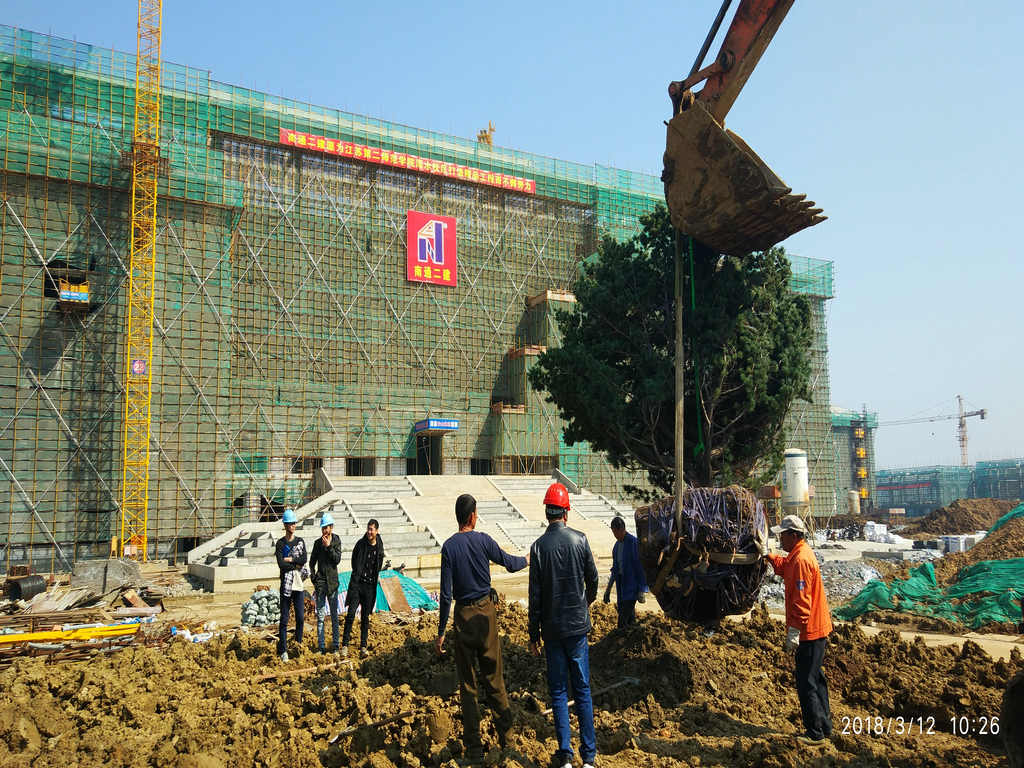 310,江宁城建园林公司会同学校绿化专业人员,现场确定移植方案,并现场进行花坛破除,树根捆扎工作。