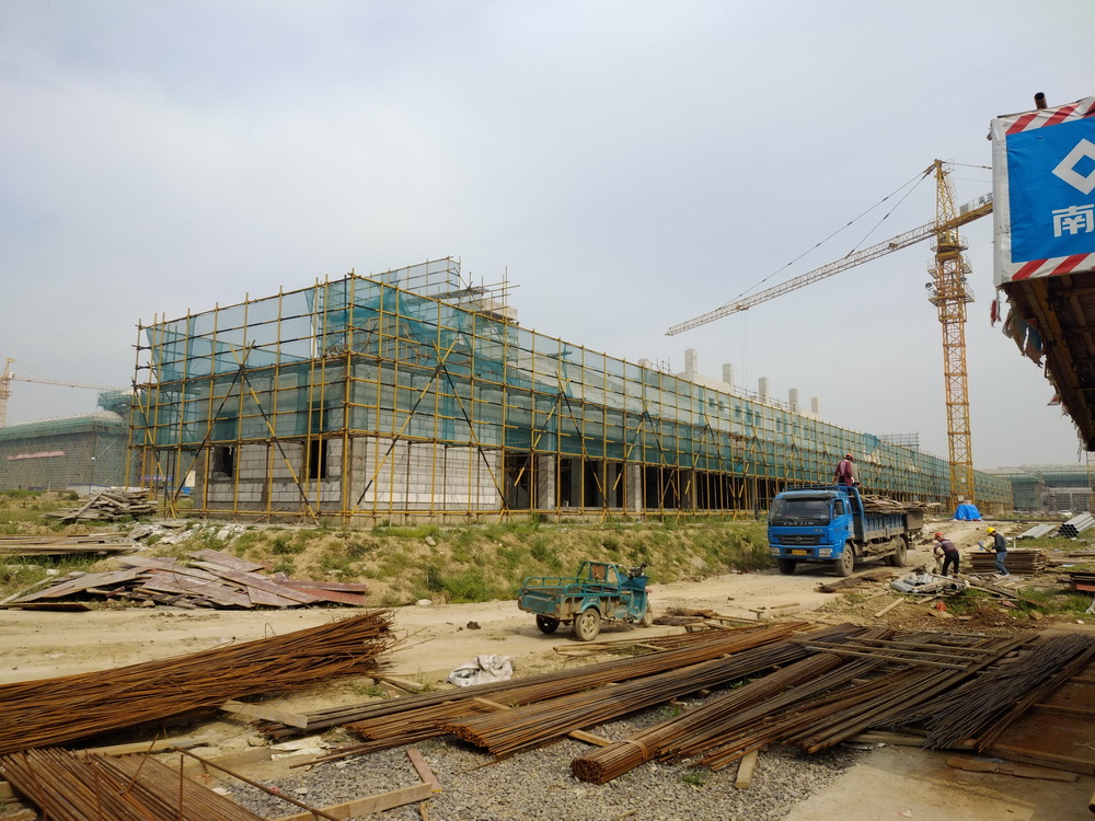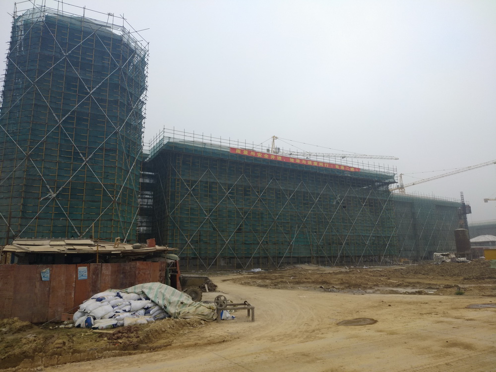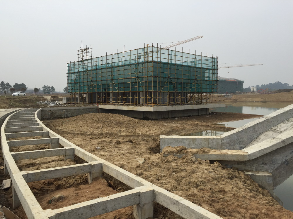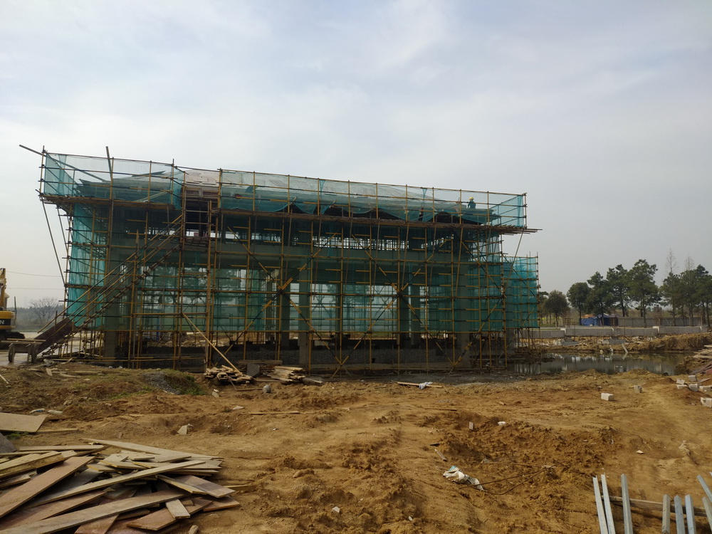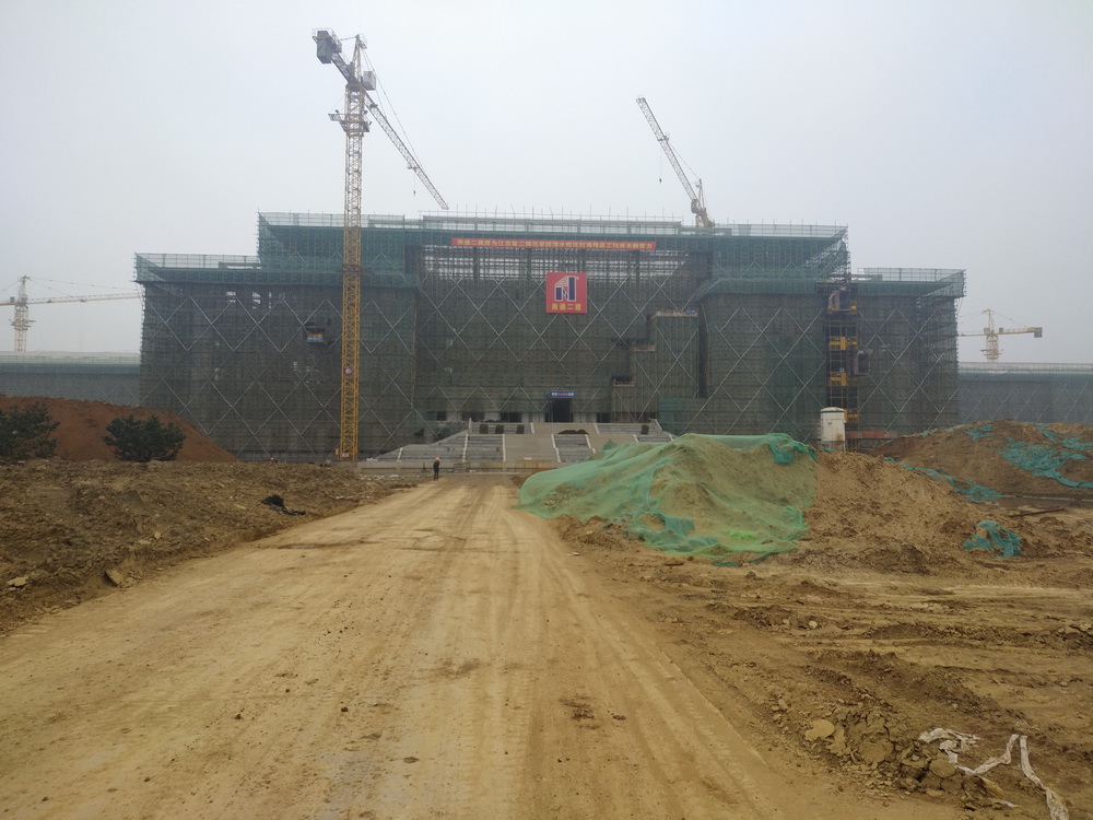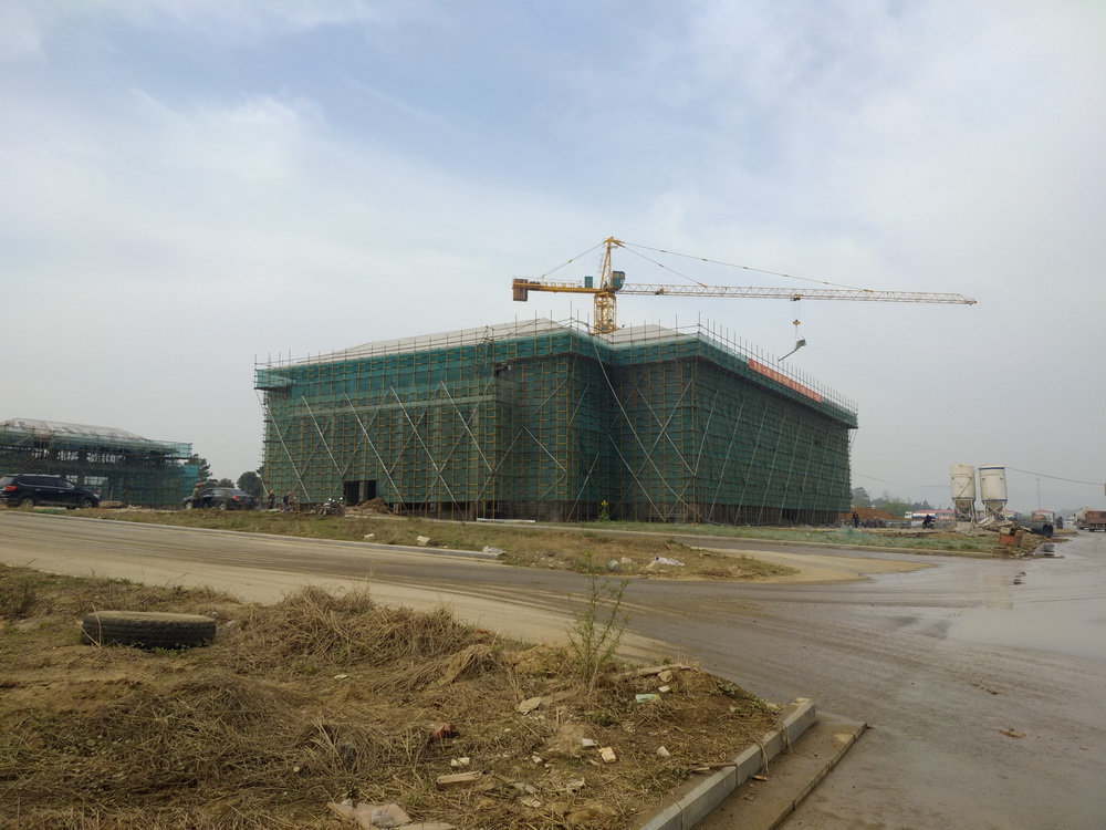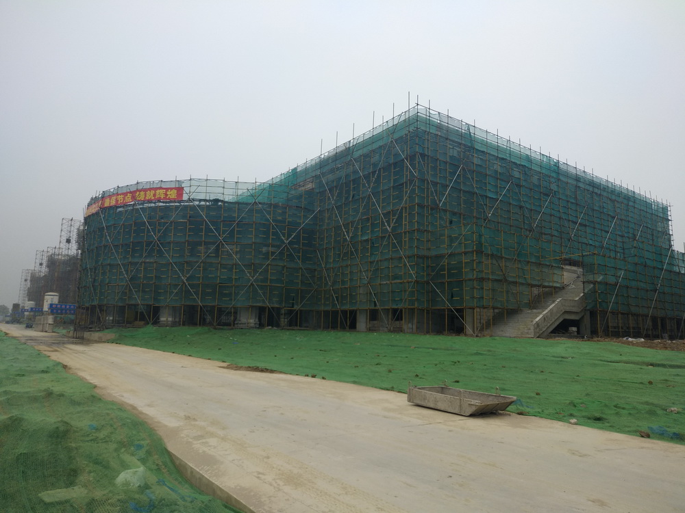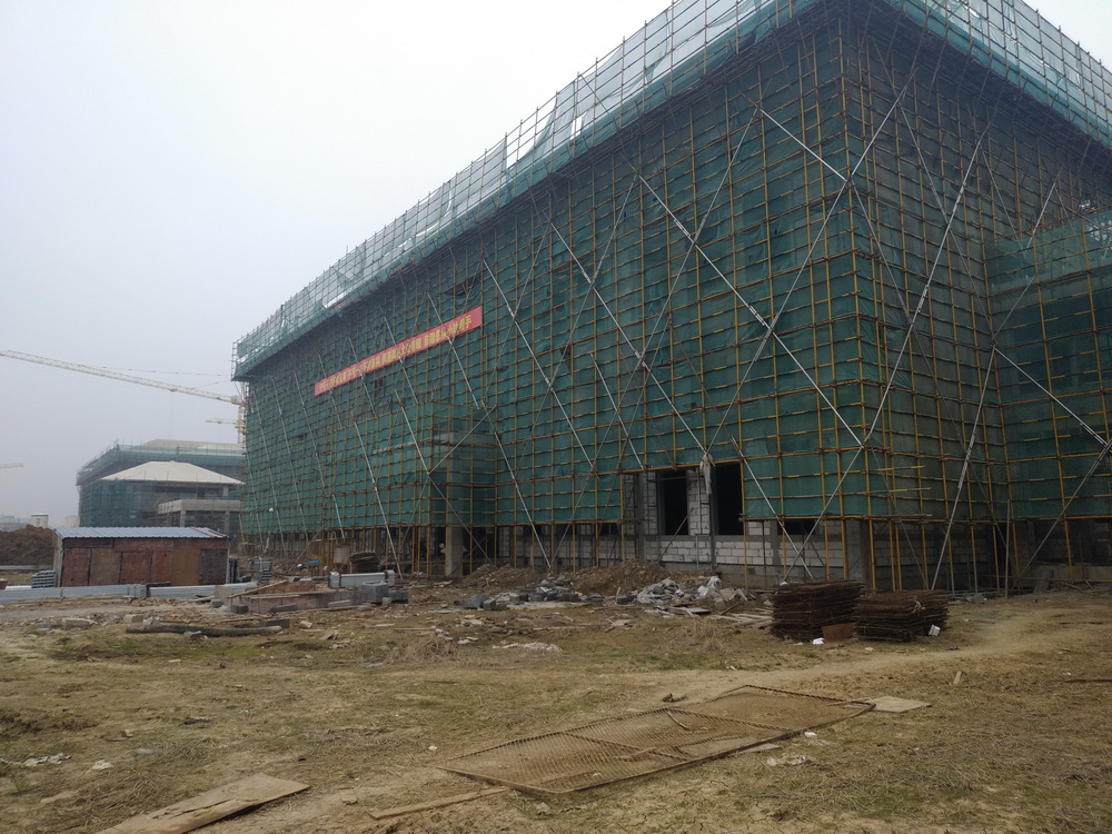 12. 图文信息中心:内墙粉刷完成20%,外墙线条护角,钢丝网完成50%外墙保温进场。
