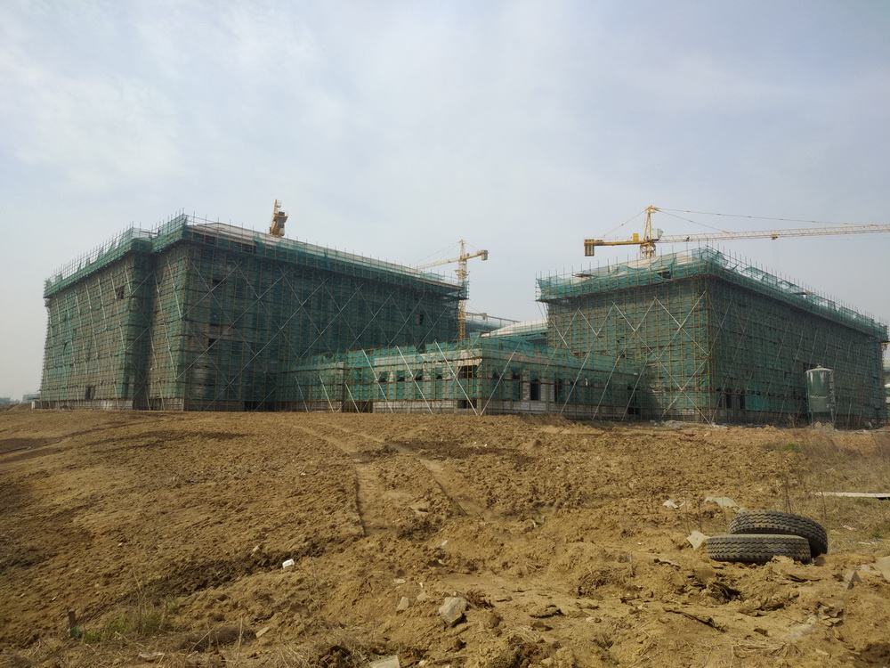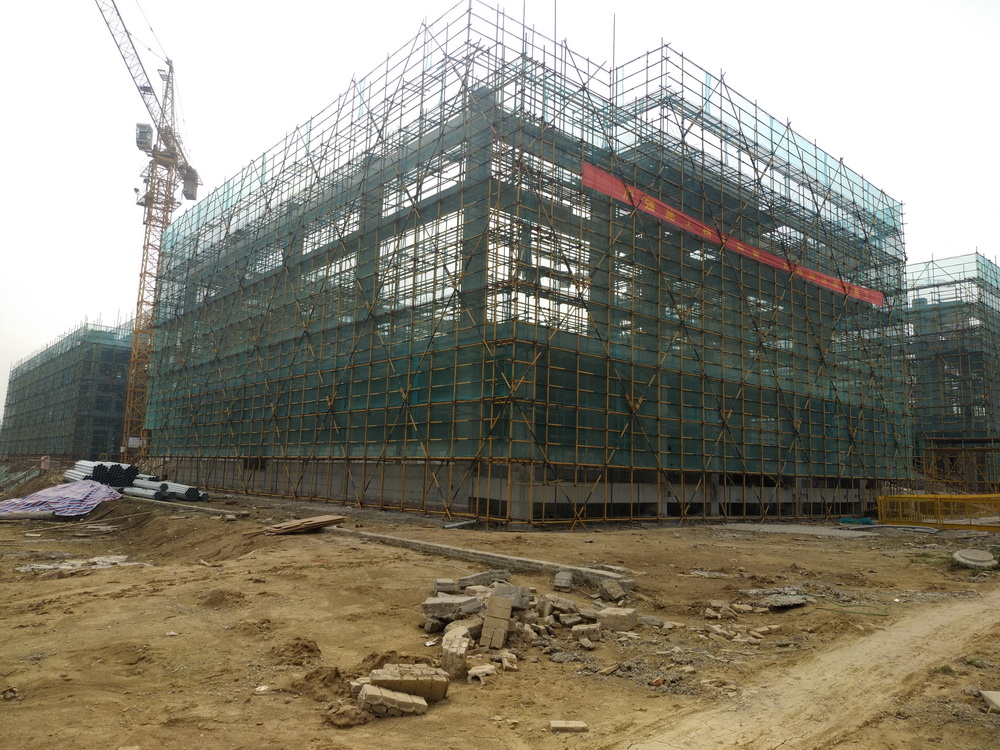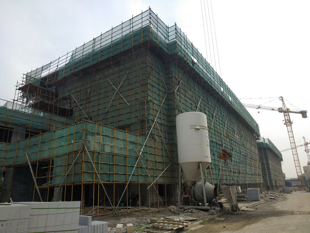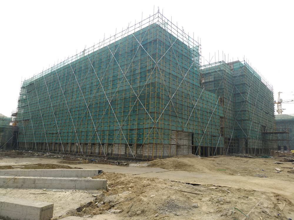 3. 公共教学楼:内墙粉刷完成20%,外墙线条护角、钢丝网完成铺设外墙保温进场施工;
